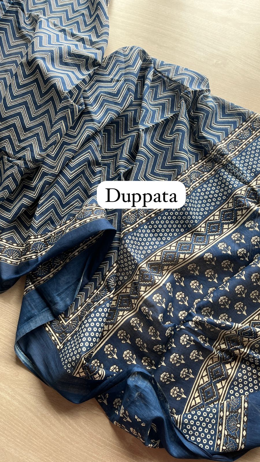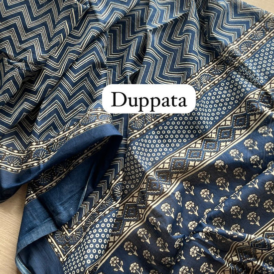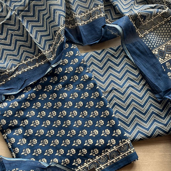Hand Block Printed Cotton 3 Piece Unstitched Suit Set with Cotton Duppata