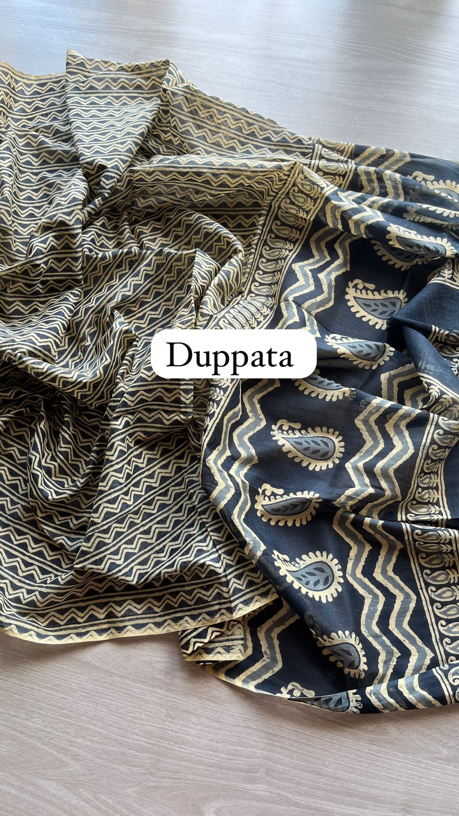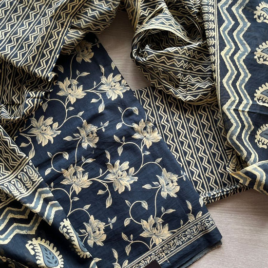 Hand Block Printed Cotton 3 Piece Unstitched Suit Set with Cotton Duppata