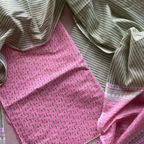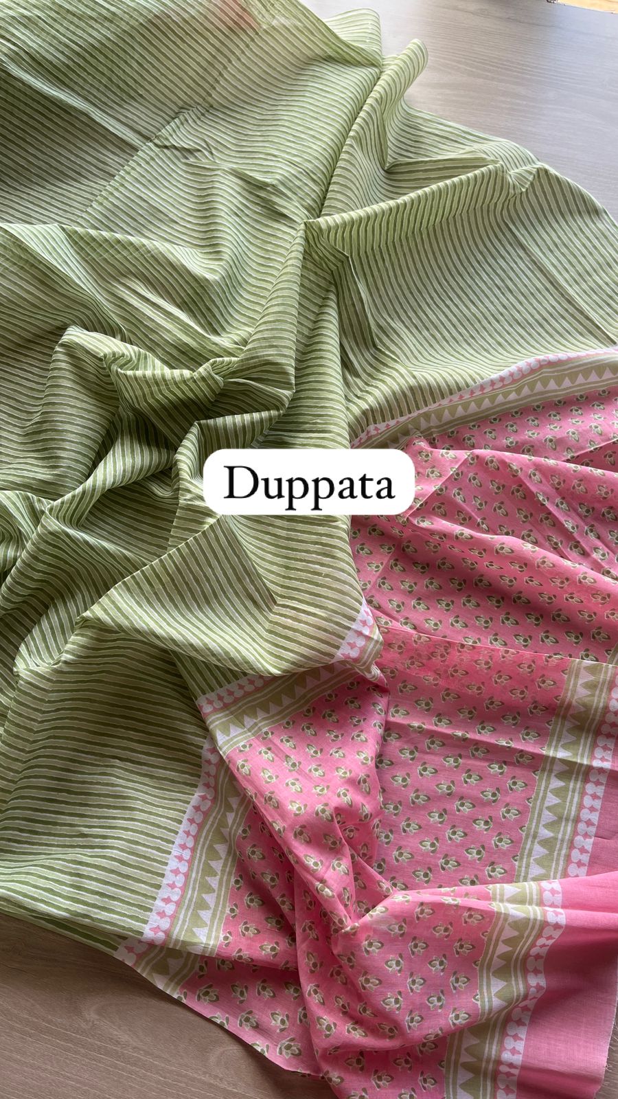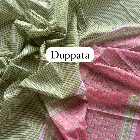 Hand Block Printed Cotton 3 Piece Unstitched Suit Set with Cotton Duppata