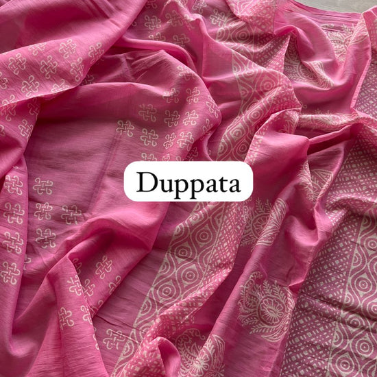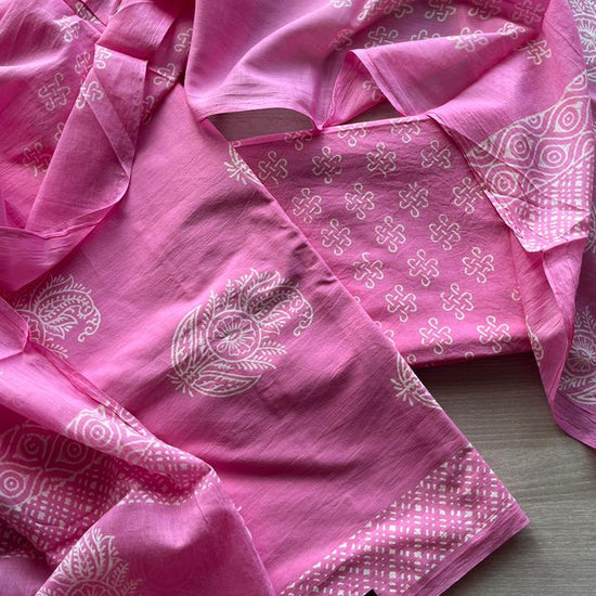 Hand Block Printed Cotton 3 Piece Unstitched Suit Set with Cotton Duppata
