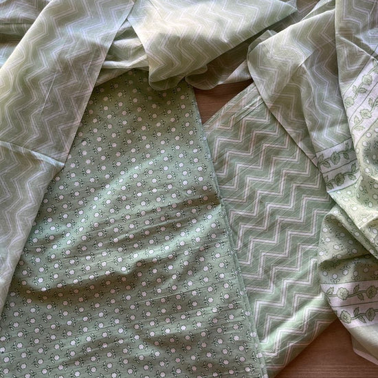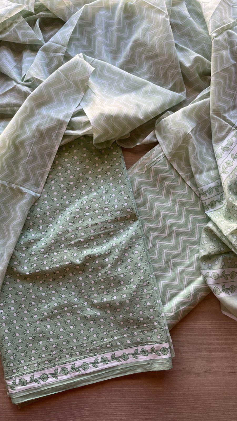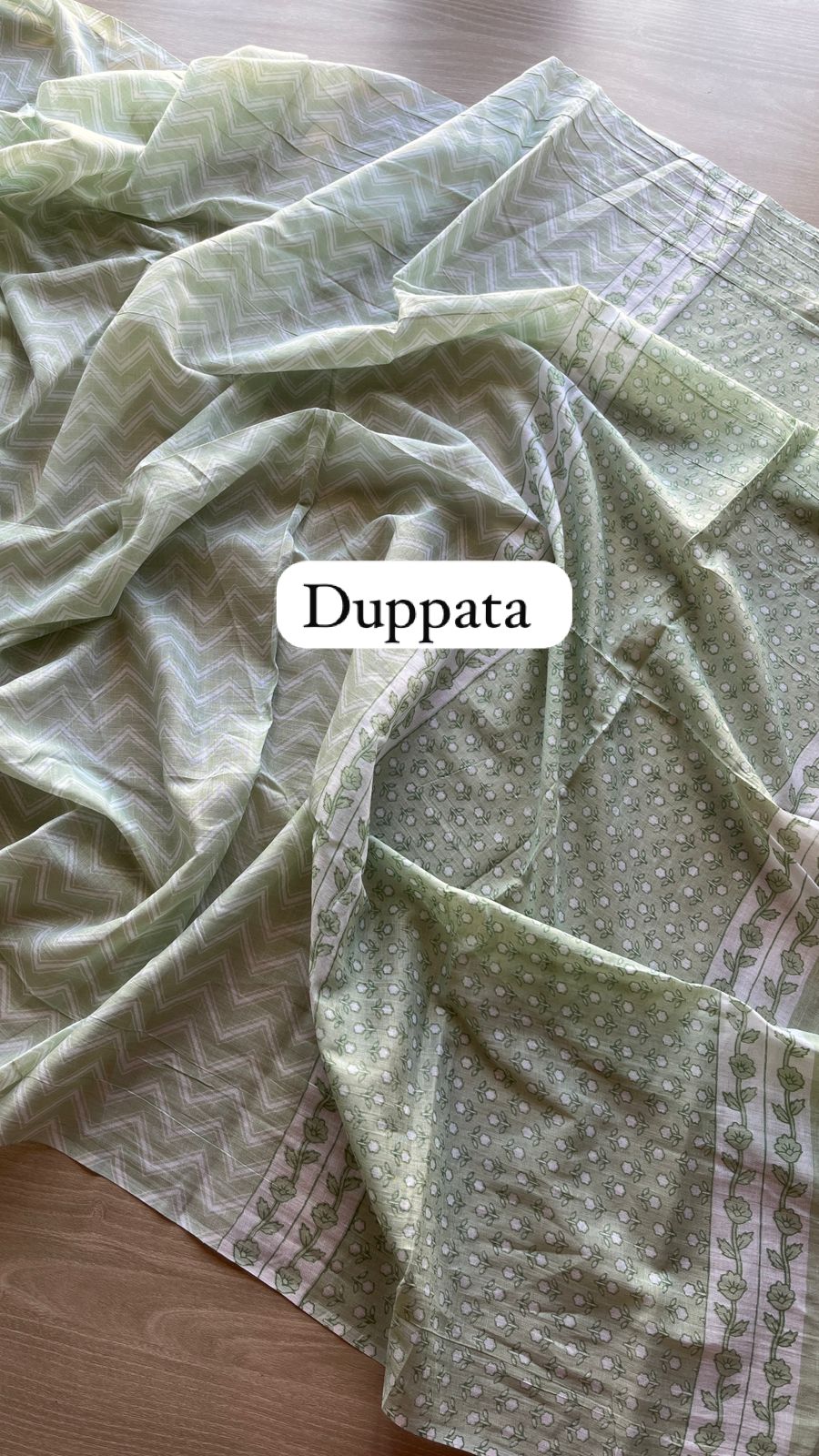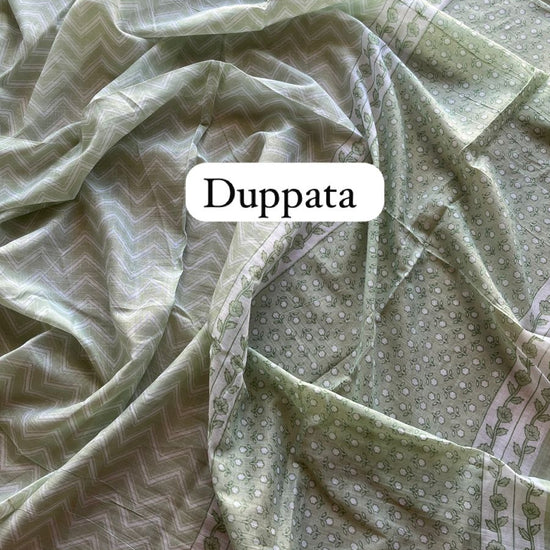 Hand Block Printed Cotton 3 Piece Unstitched Suit Set with Cotton Duppata
