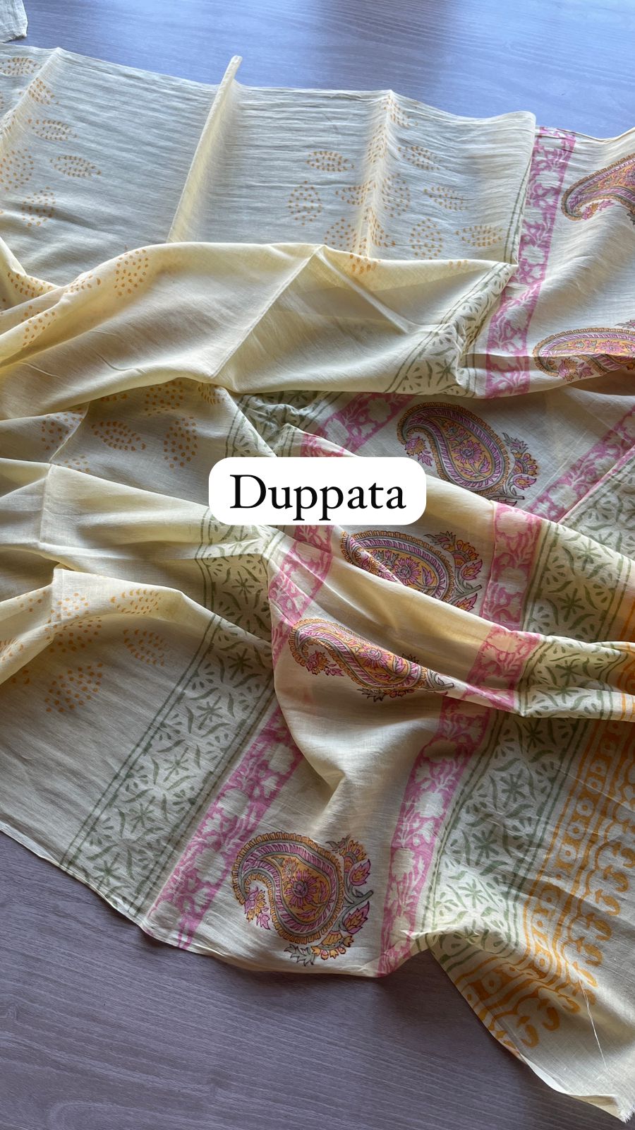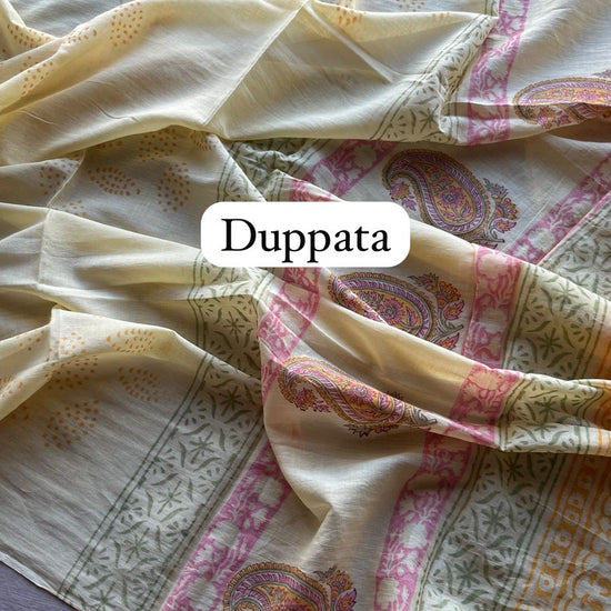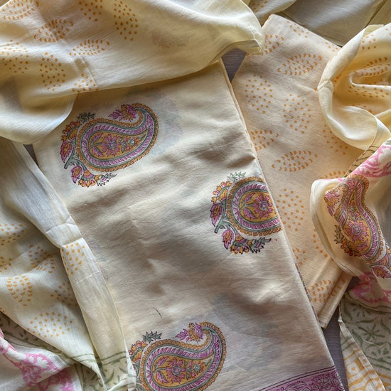 Hand Block Printed Cotton 3 Piece Unstitched Suit Set with Cotton Duppata -24609