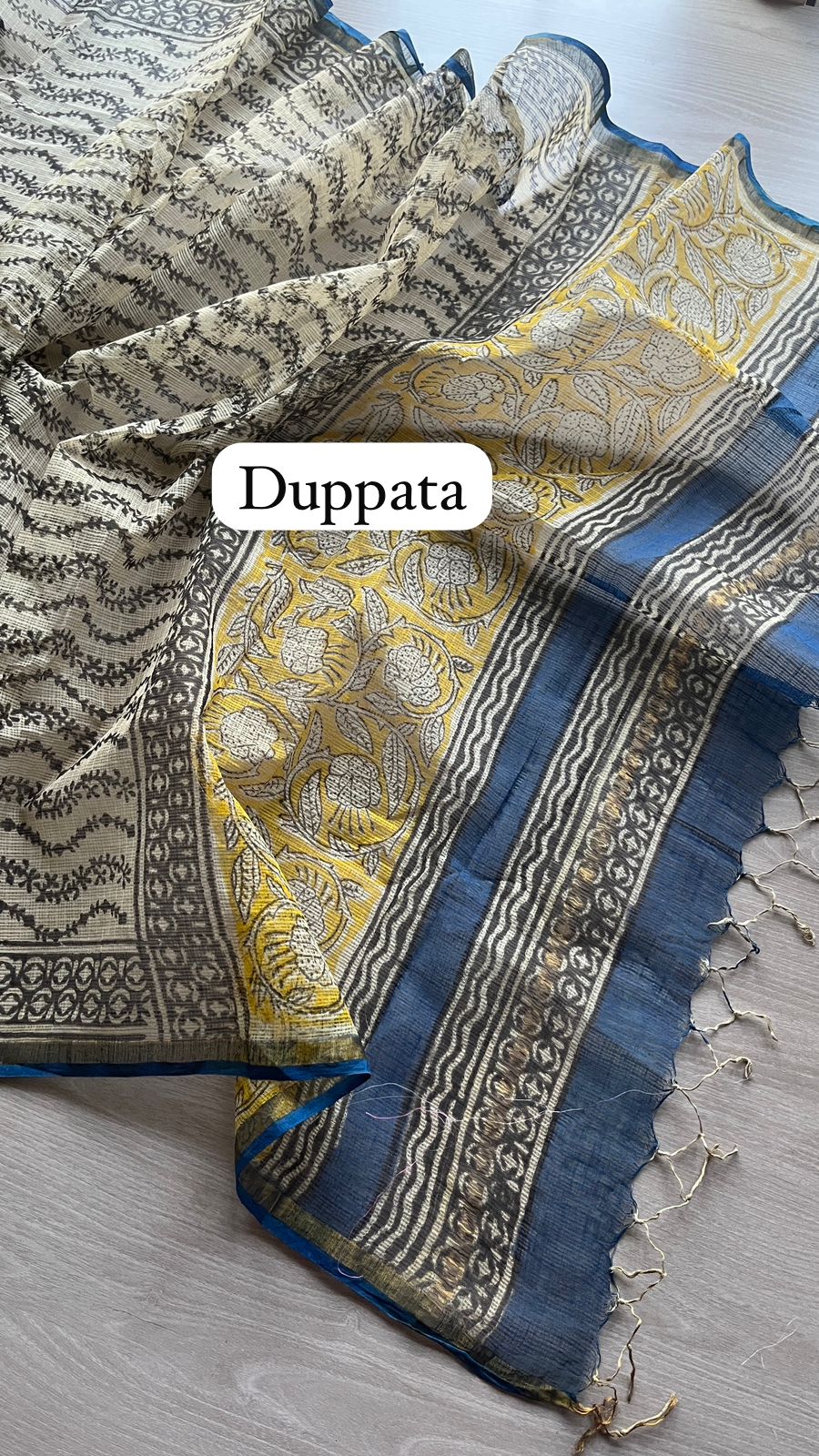 Hand Block Printed Cotton Suit with Kota Duppata -24633