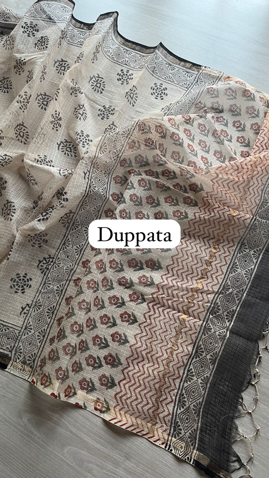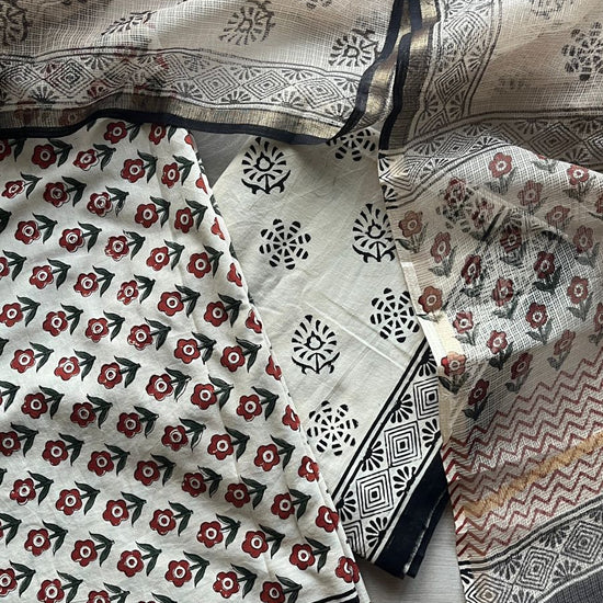 Hand Block Printed Cotton Suit with Kota Duppata -24634