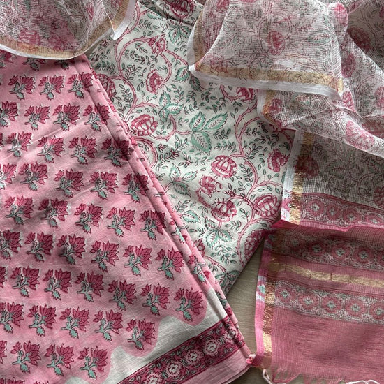 Hand Block Printed Cotton Suit with Kota Duppata -24641