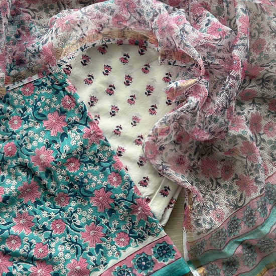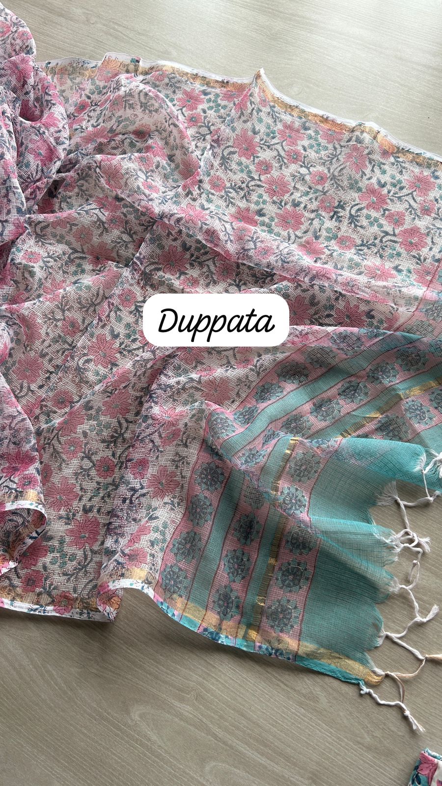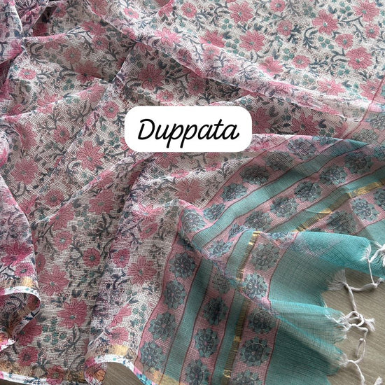 Hand Block Printed Cotton Suit with Kota Duppata -24655
