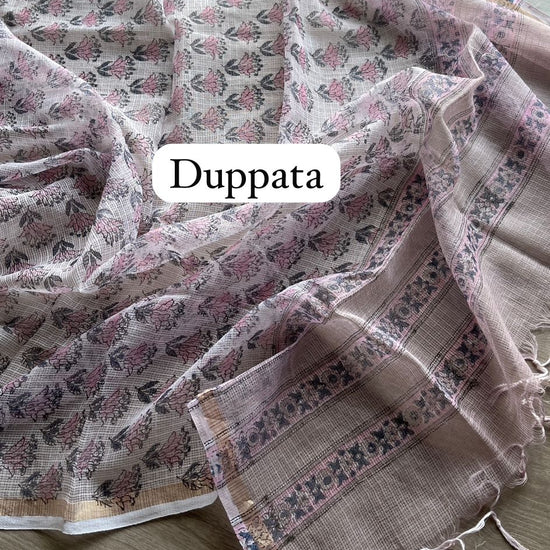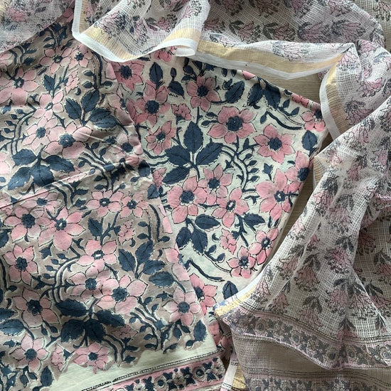 Hand Block Printed Cotton Suit with Kota Duppata -24661