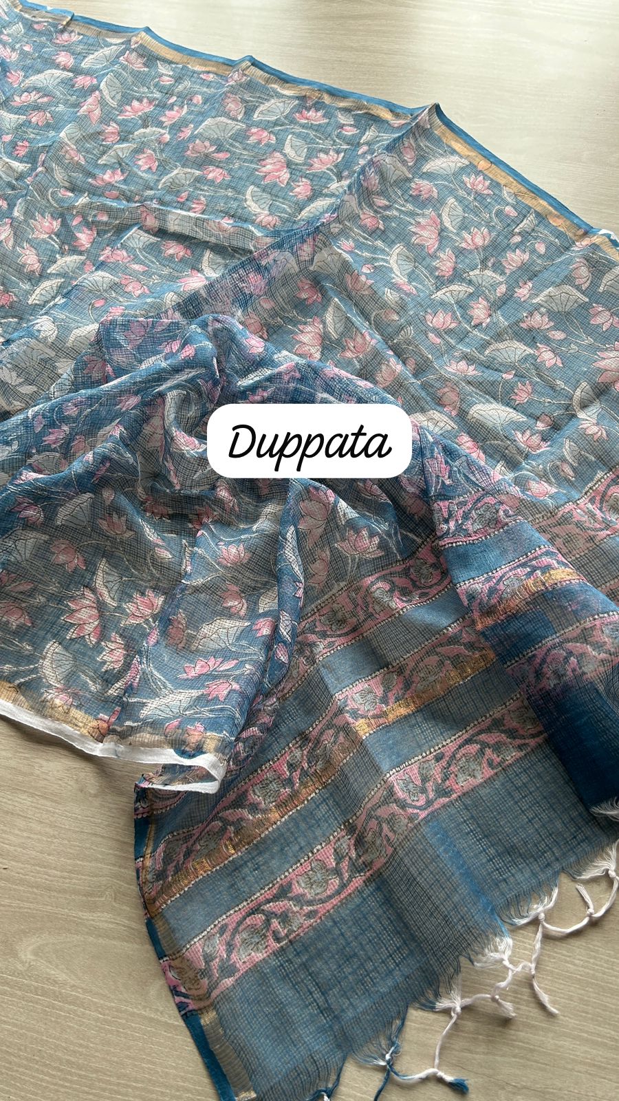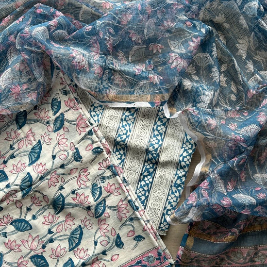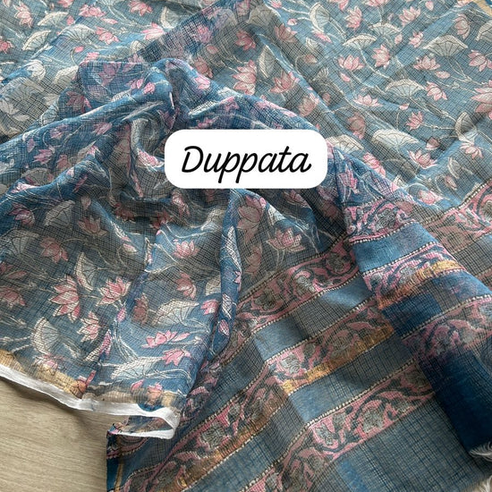 Hand Block Printed Cotton Suit with Kota Duppata -24659-24660
