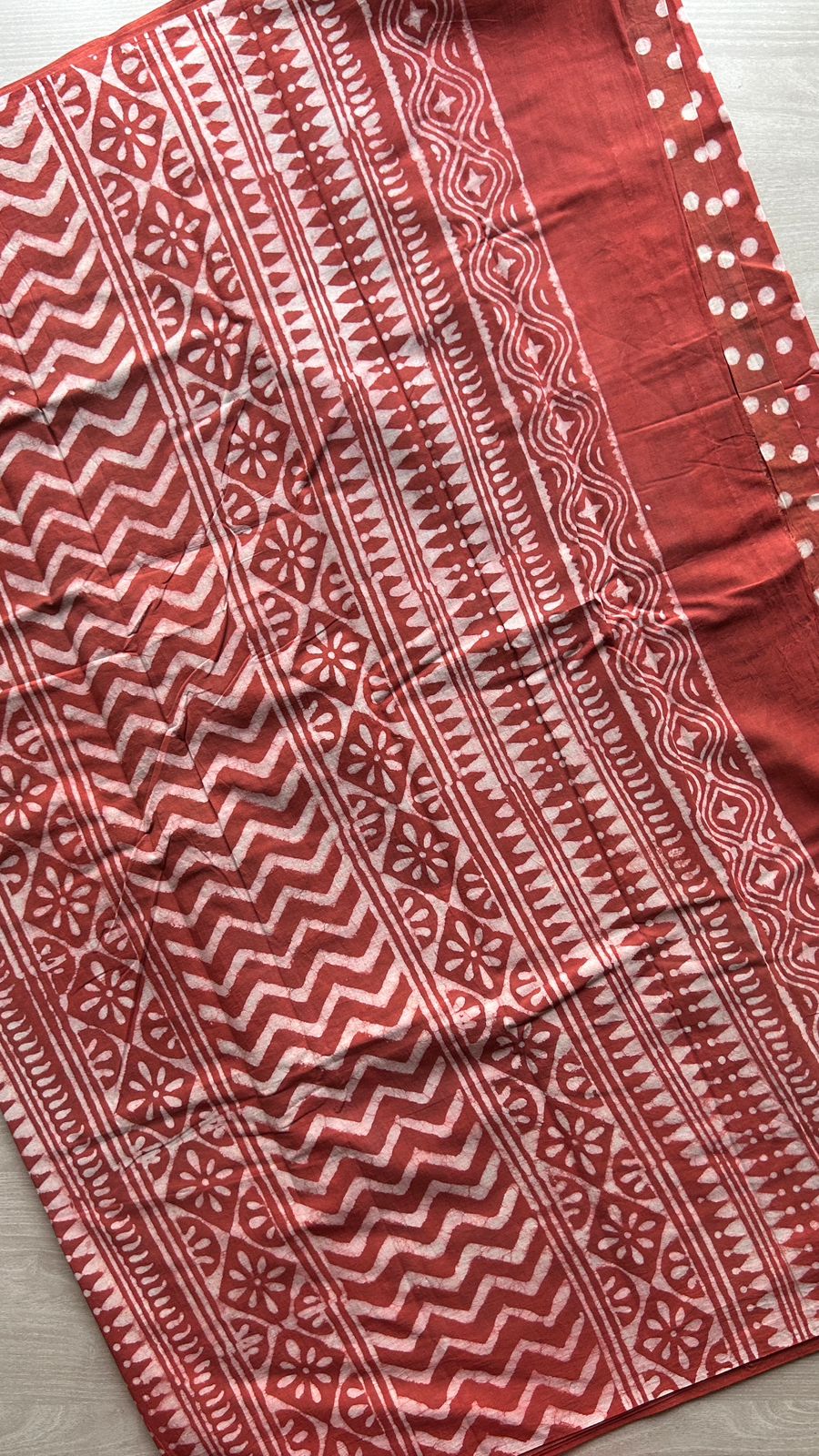 Hand Block Printed Fine Mul Cotton Saree -25213-25214