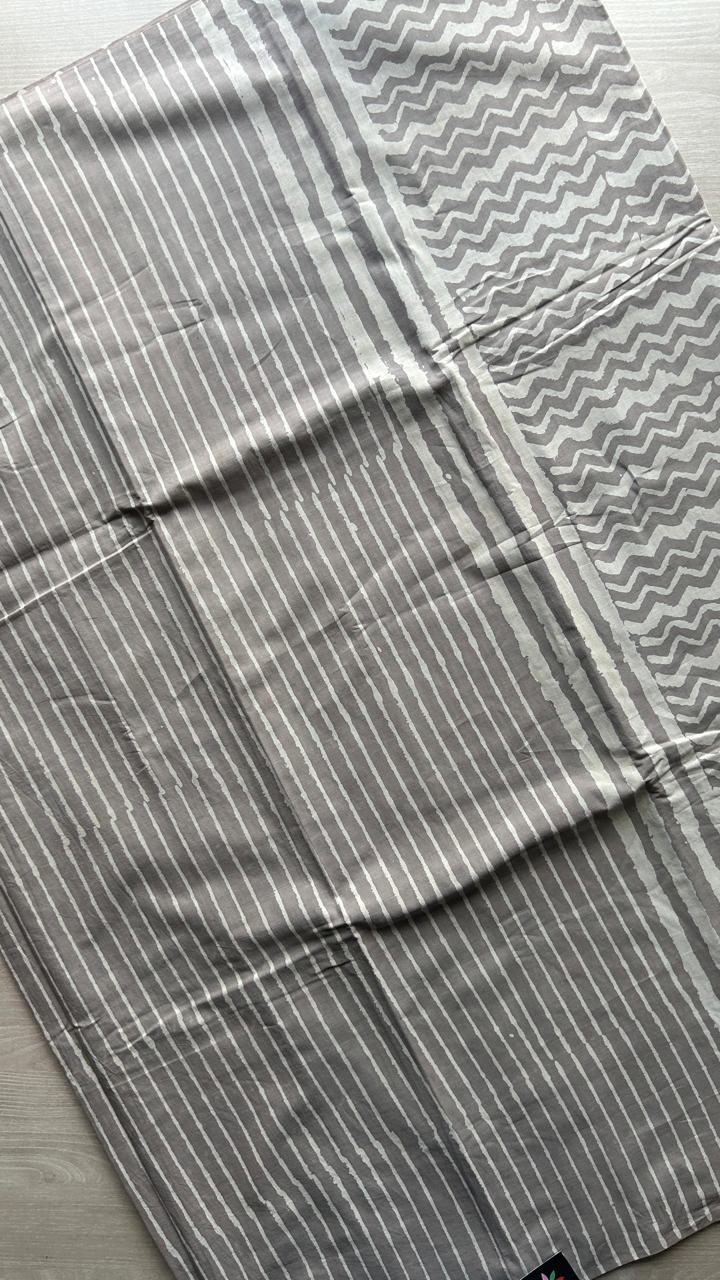 Hand Block Printed Fine Mul Cotton Saree -25299-25300