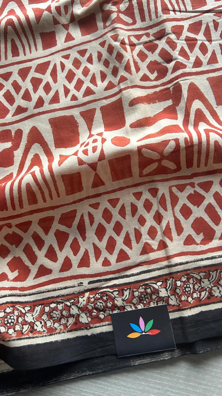Hand Block Printed Fine Mul Cotton Saree -25301-25302