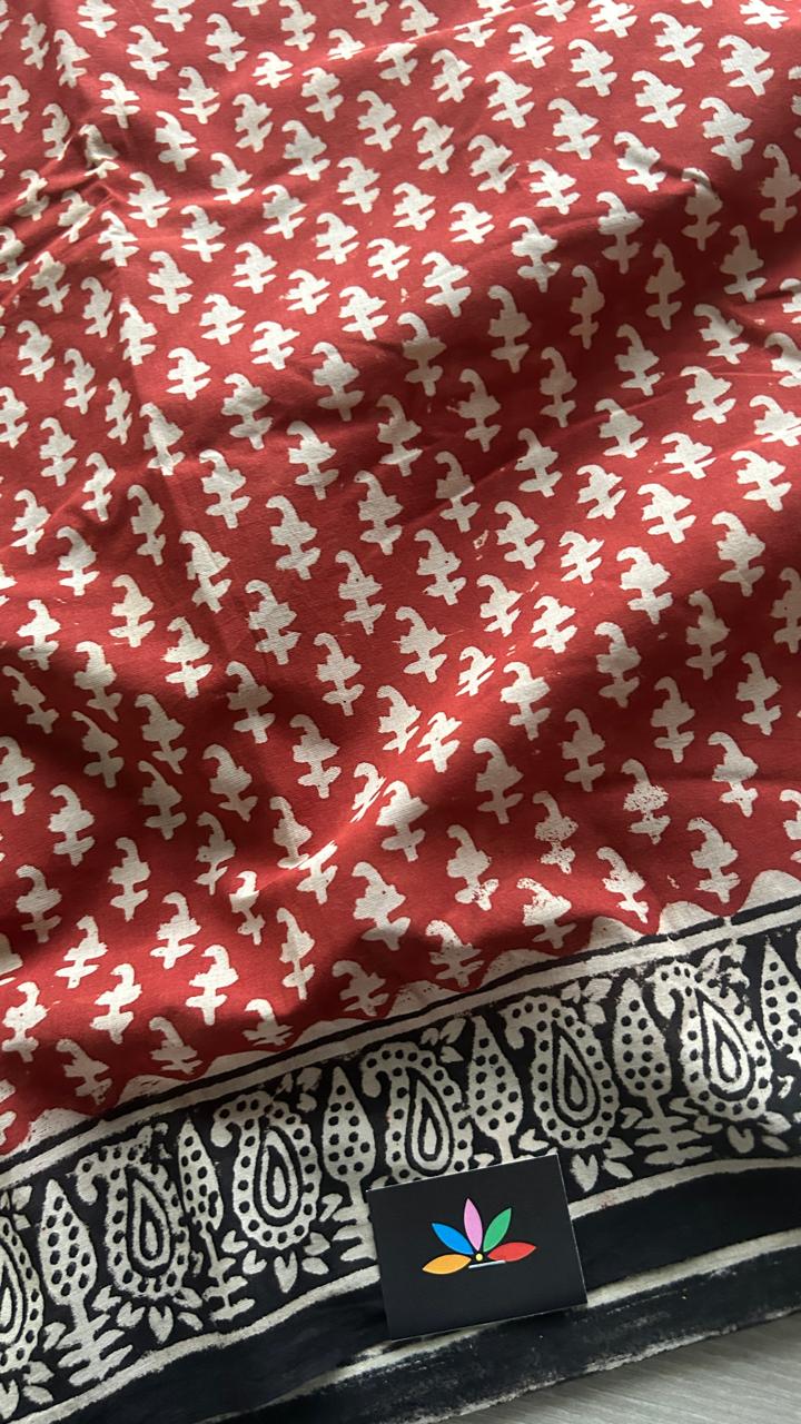 Hand Block Printed Fine Mul Cotton Saree -25307-25308
