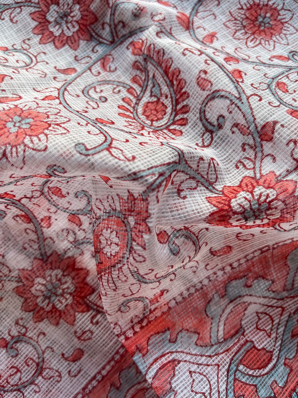 Hand Block Printed Kota Doria Saree -24196