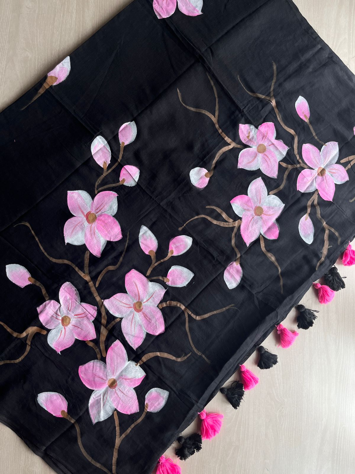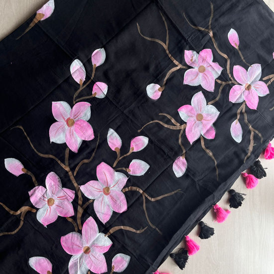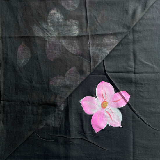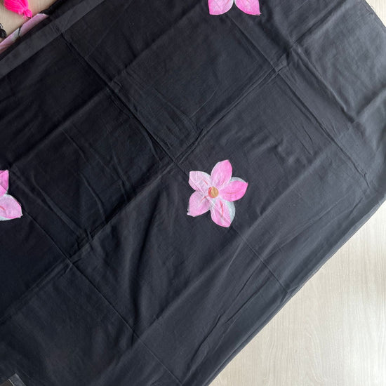 Hand Brush Printed Feather Light Mul Cotton Saree - 28352