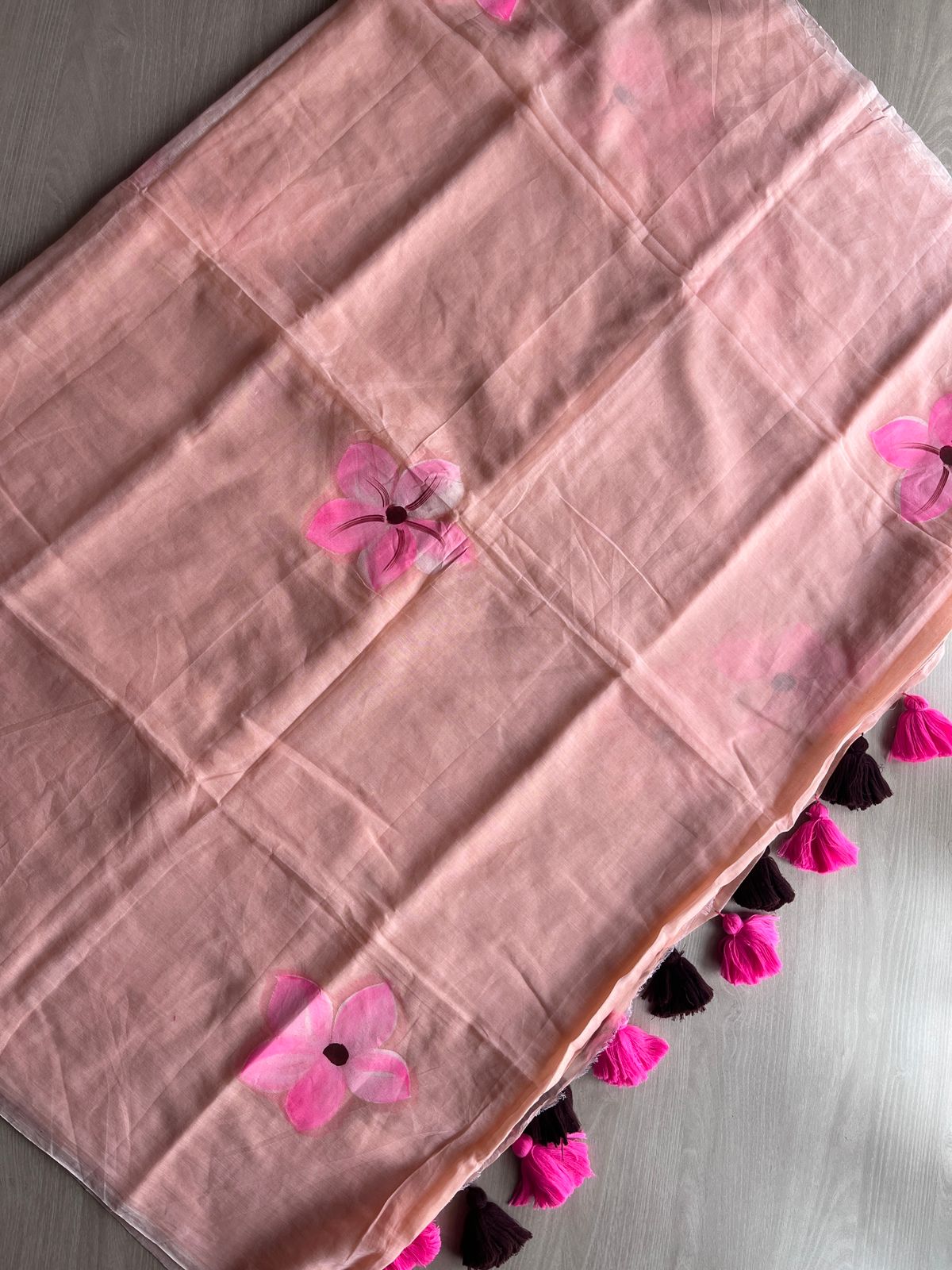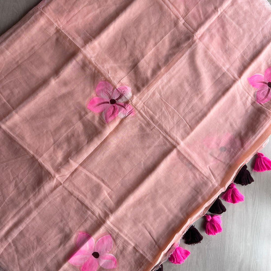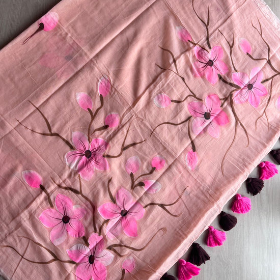 Hand Brush Printed Feather Light Mul Cotton Saree