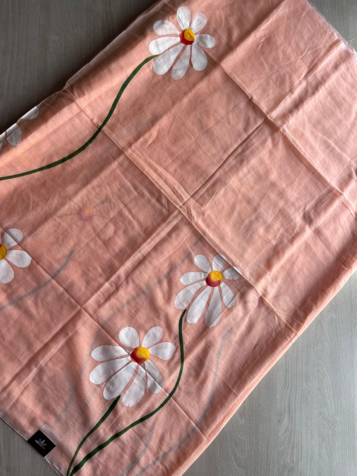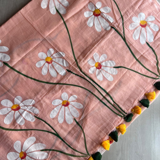 Hand Brush Printed Feather Light Mul Cotton Saree