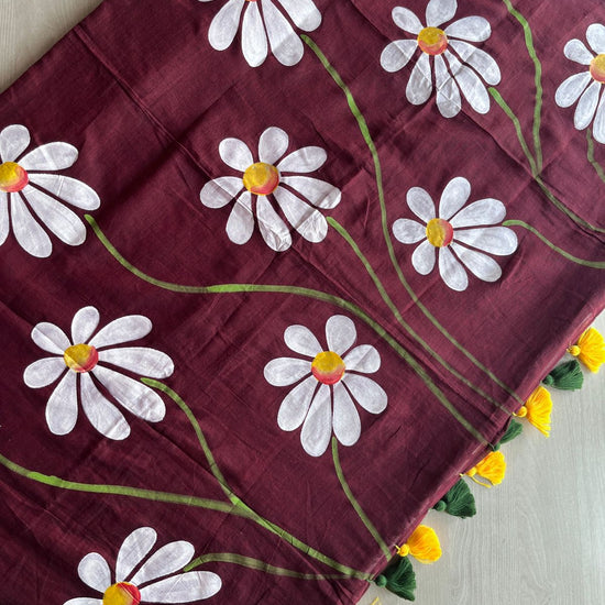 Hand Brush Printed Feather Light Mul Cotton Saree - 28436-28437