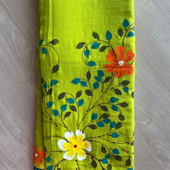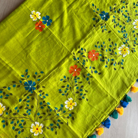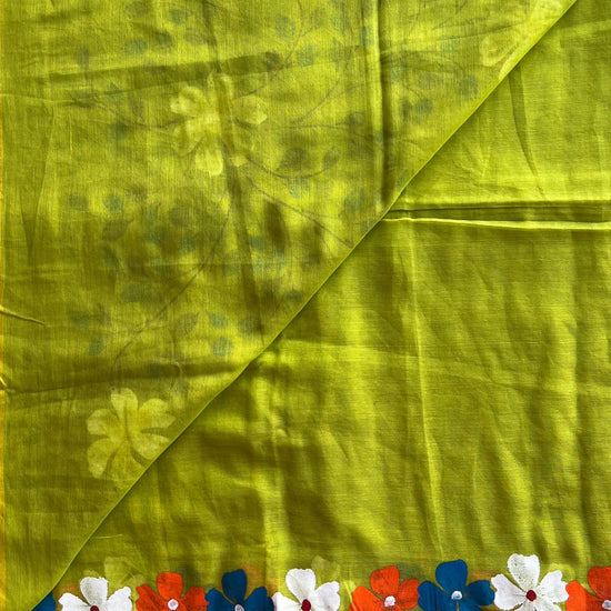 Hand Brush Printed Feather Light Mul Cotton Saree