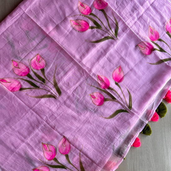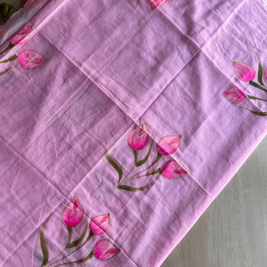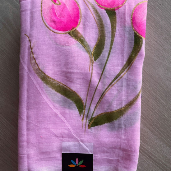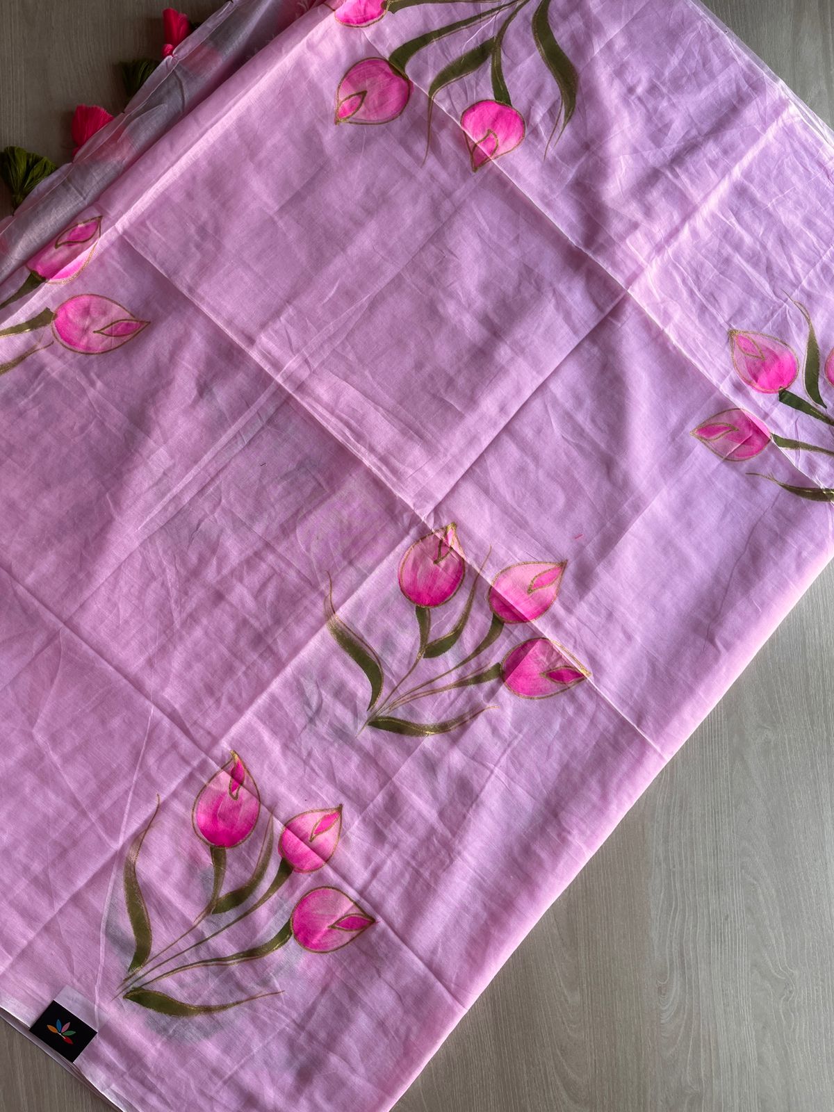 Hand Brush Printed Feather Light Mul Cotton Saree