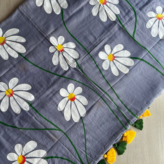 Hand Brush Printed Feather Light Mul Cotton Saree - 28452-28453