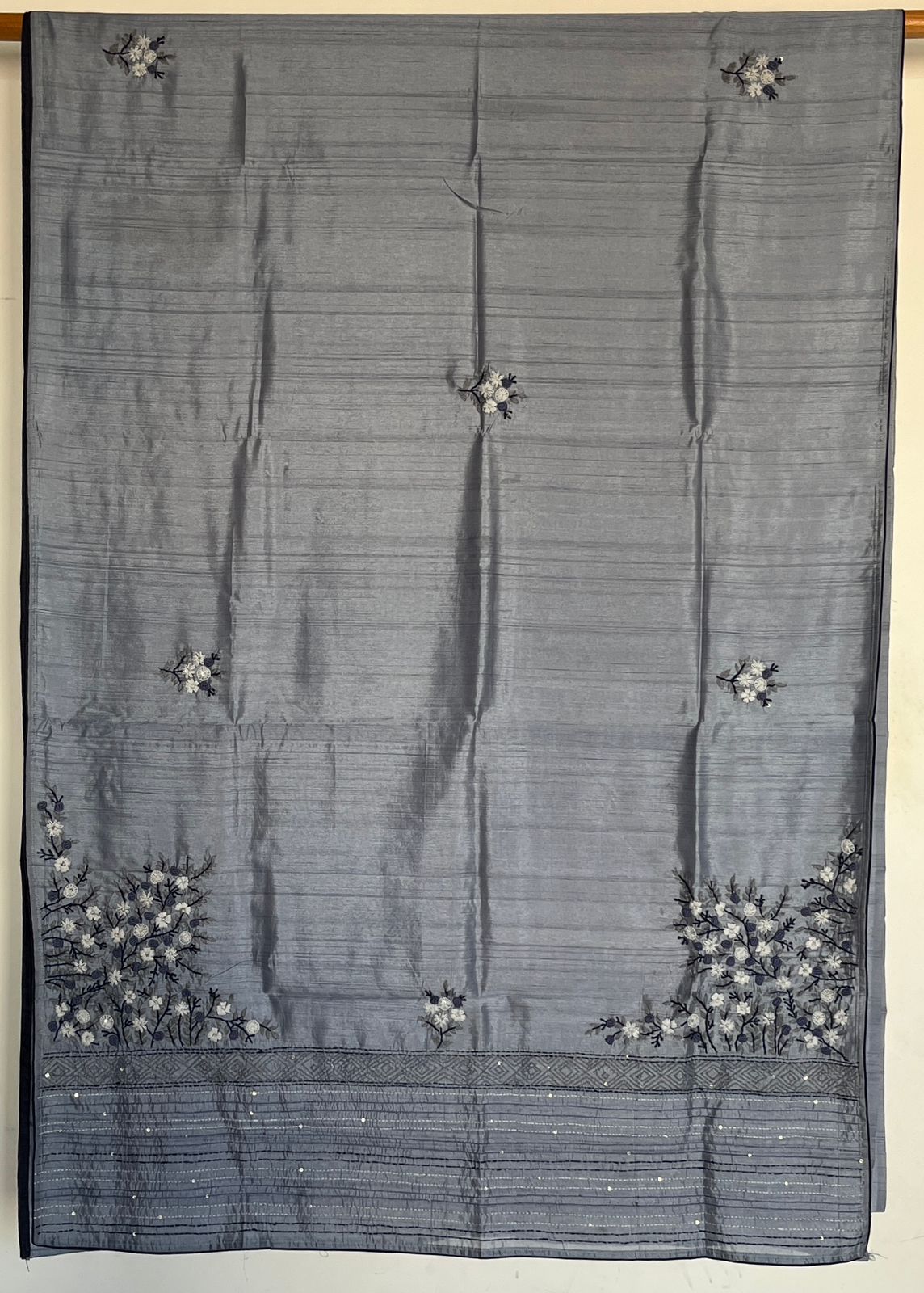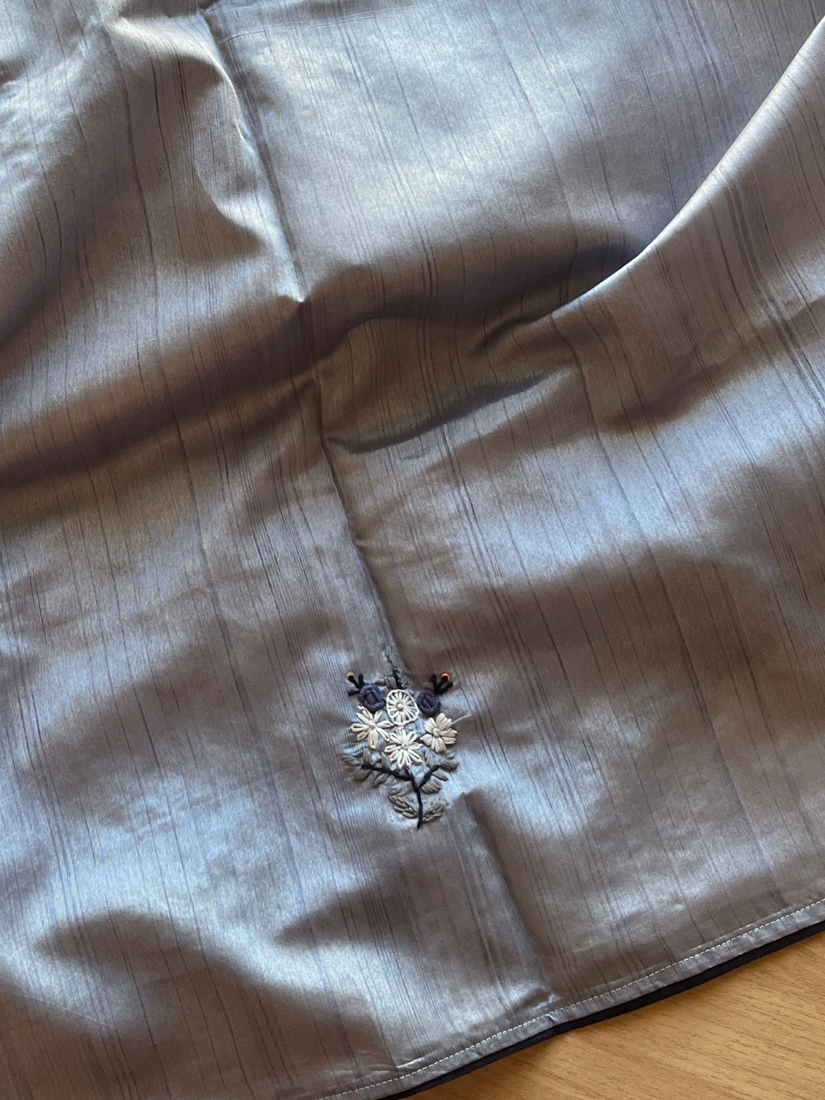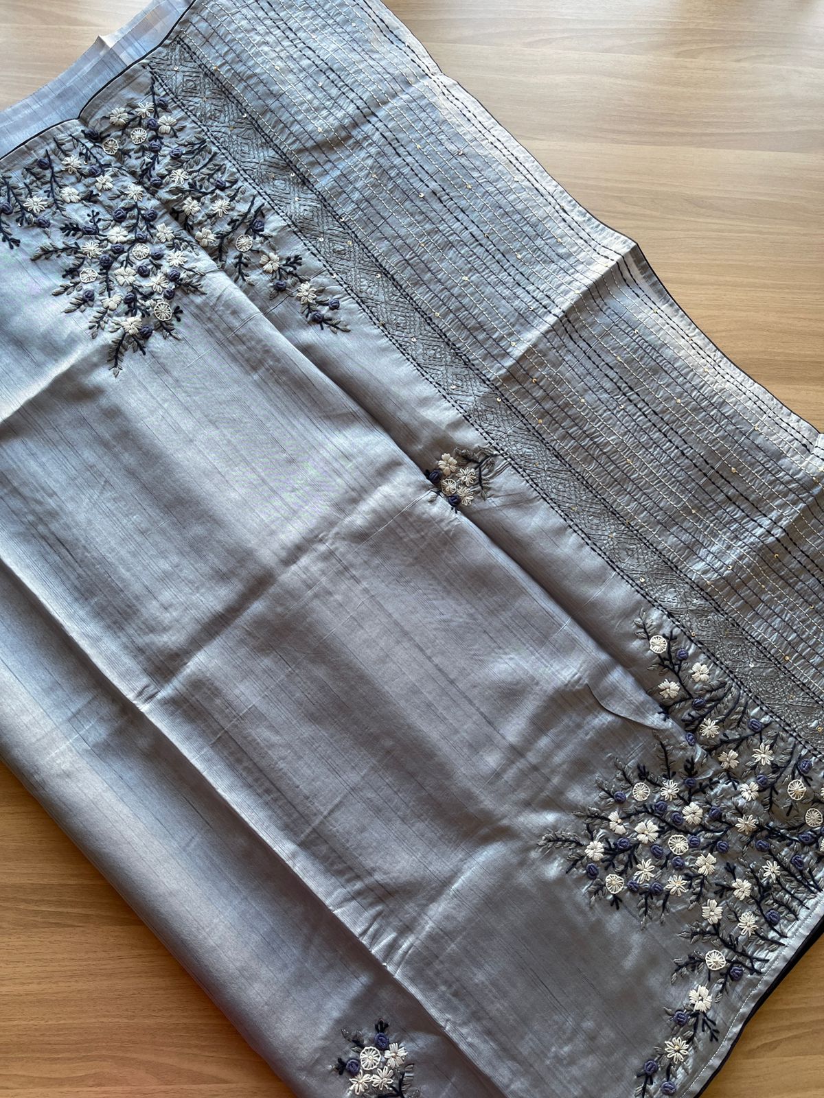 Hand embroidered Bullion Knot Semi Tussar Silk Saree