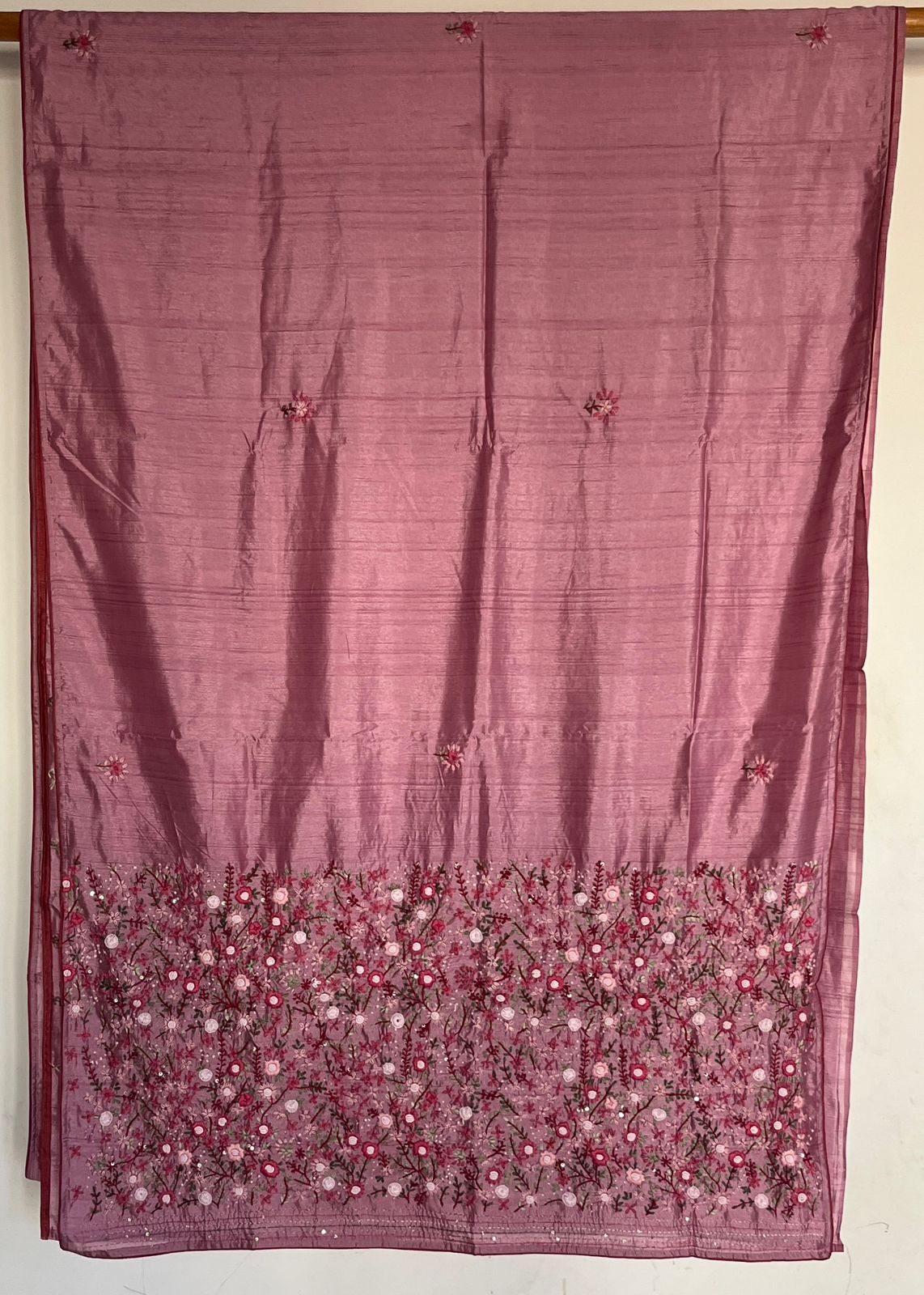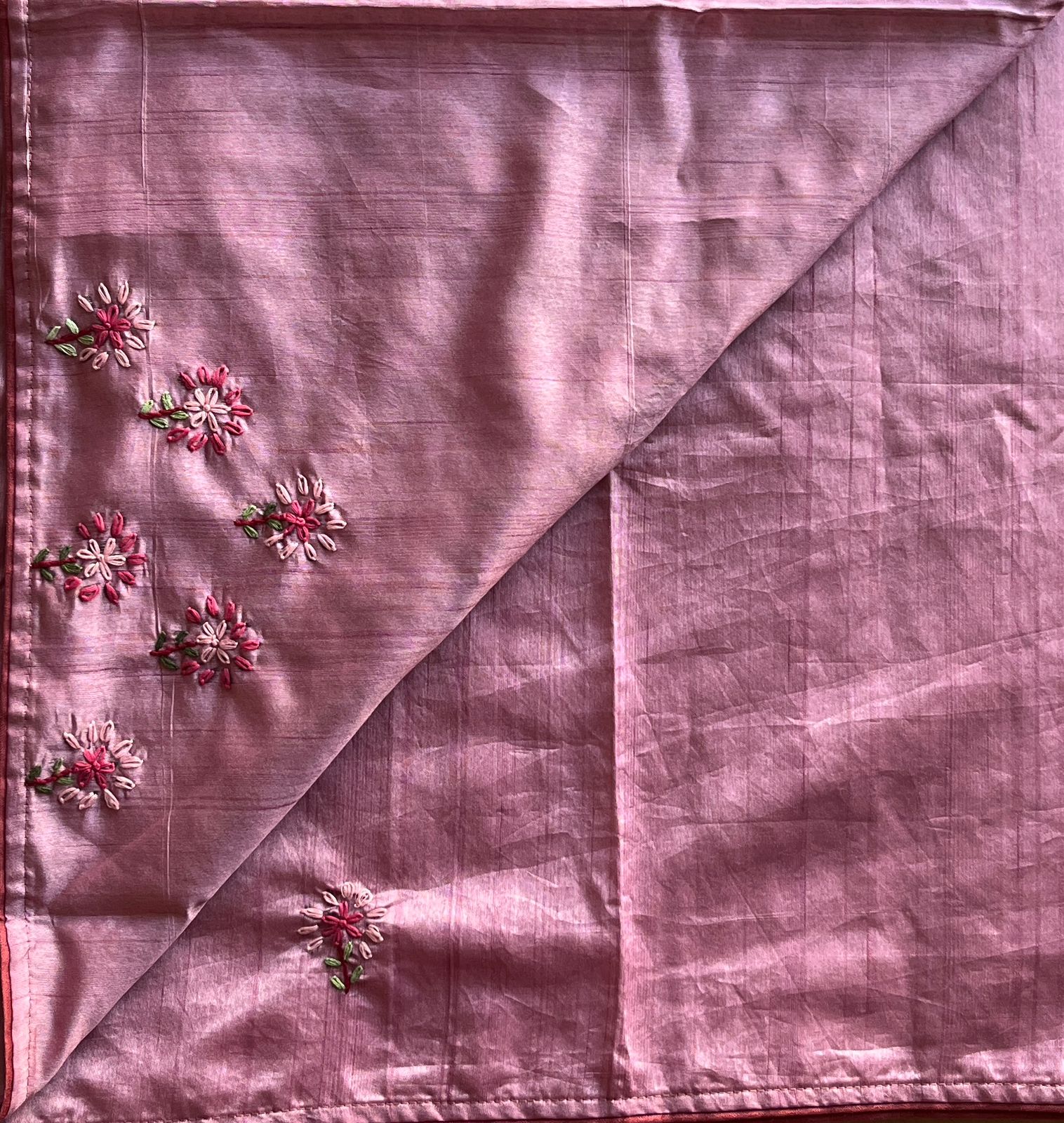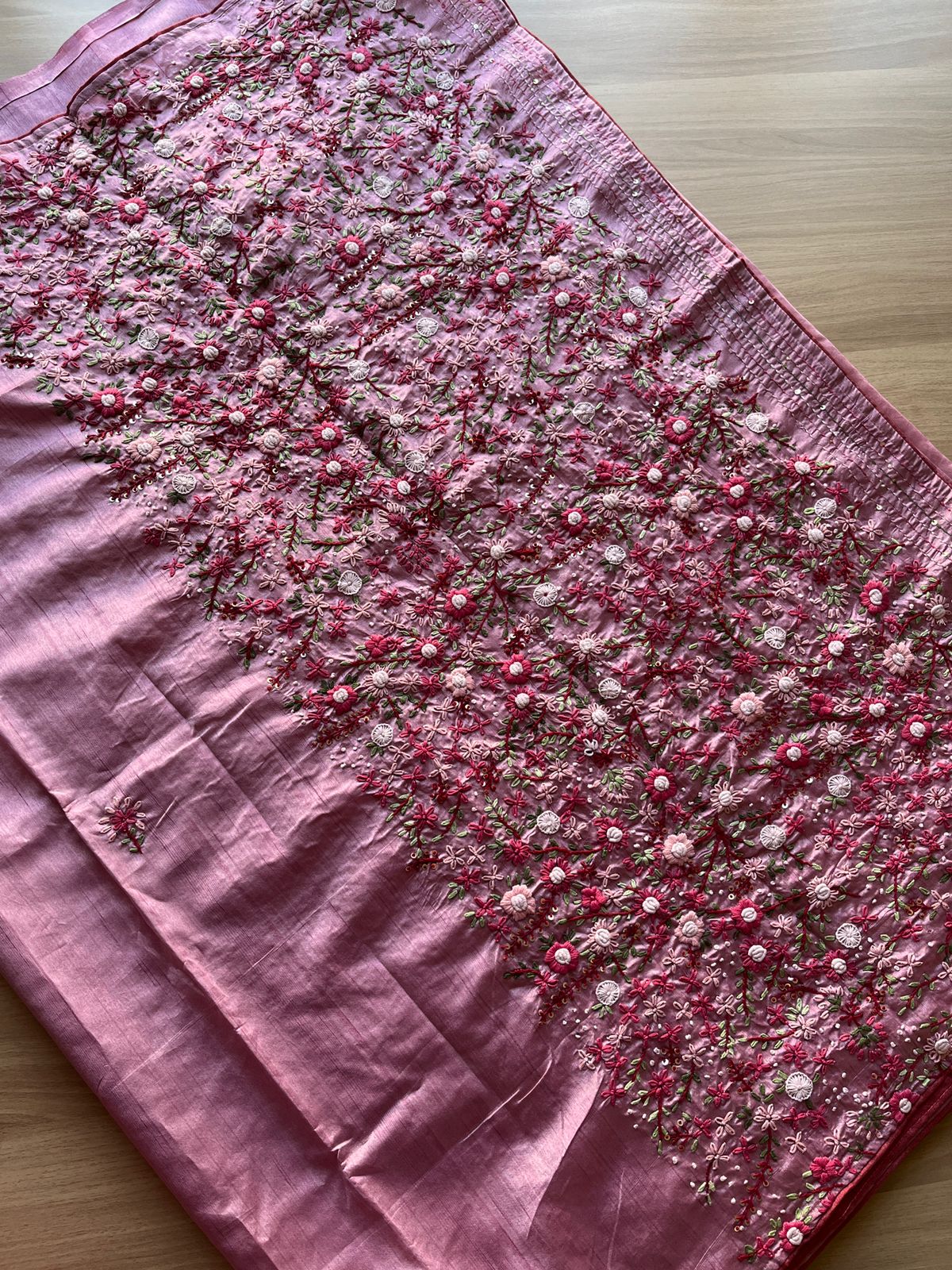 Hand embroidered Bullion Knot Semi Tussar Silk Saree