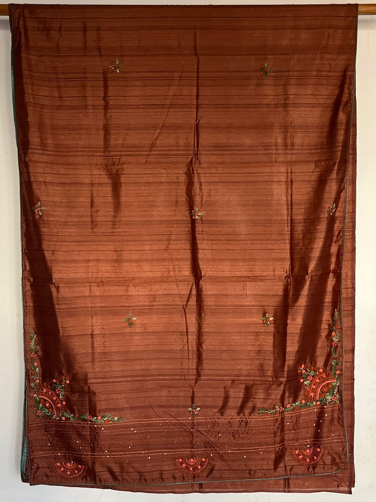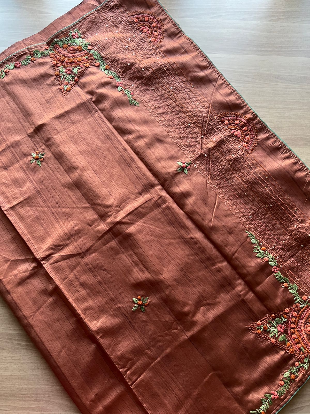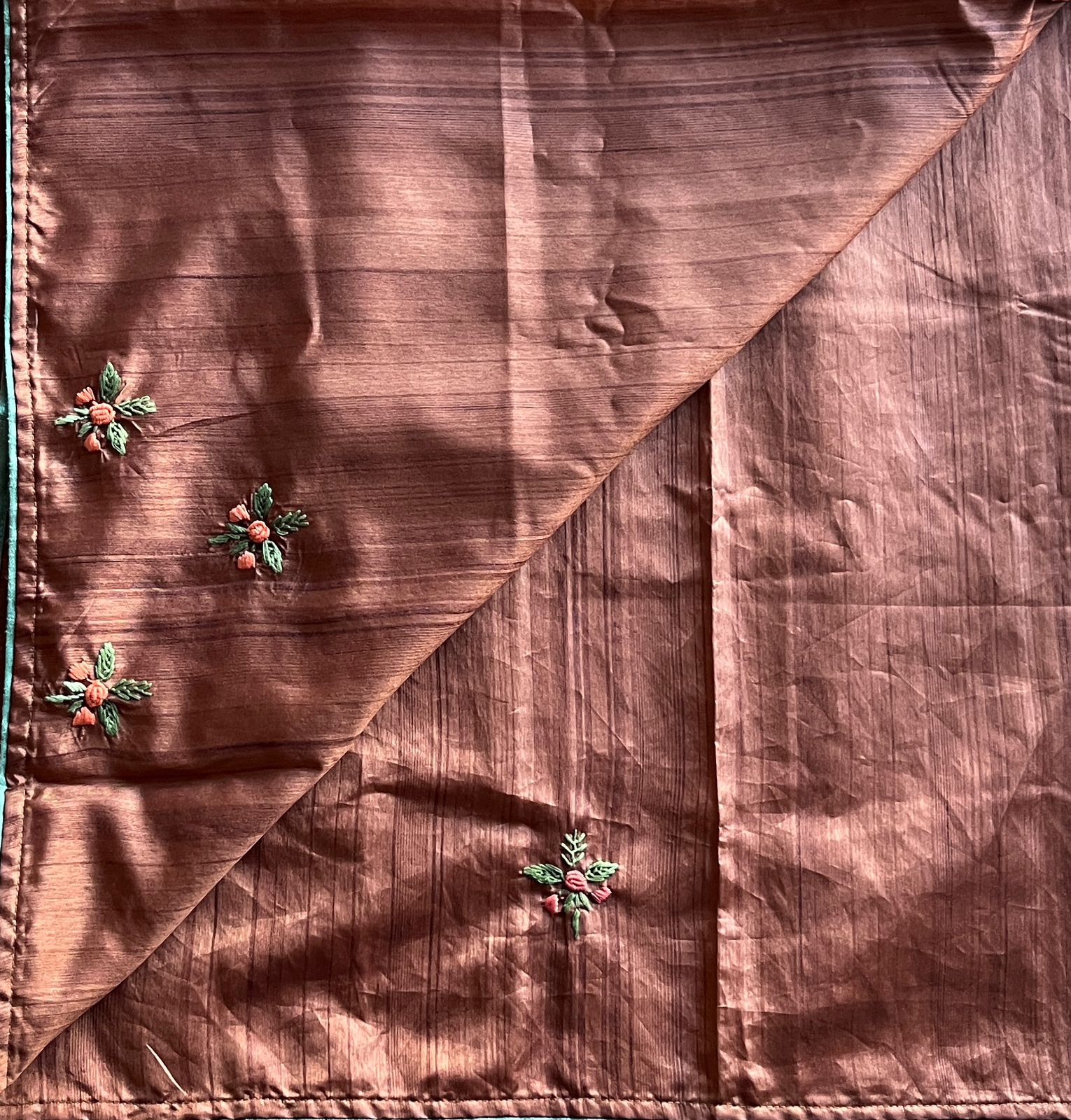 Hand embroidered Bullion Knot Semi Tussar Silk Saree