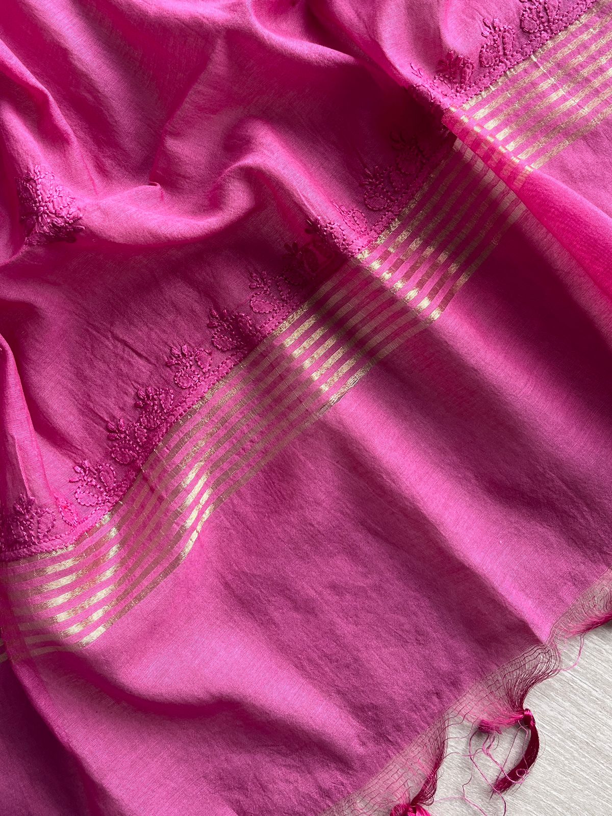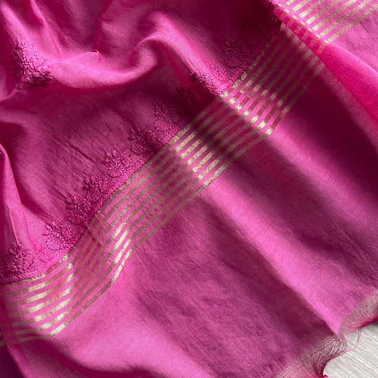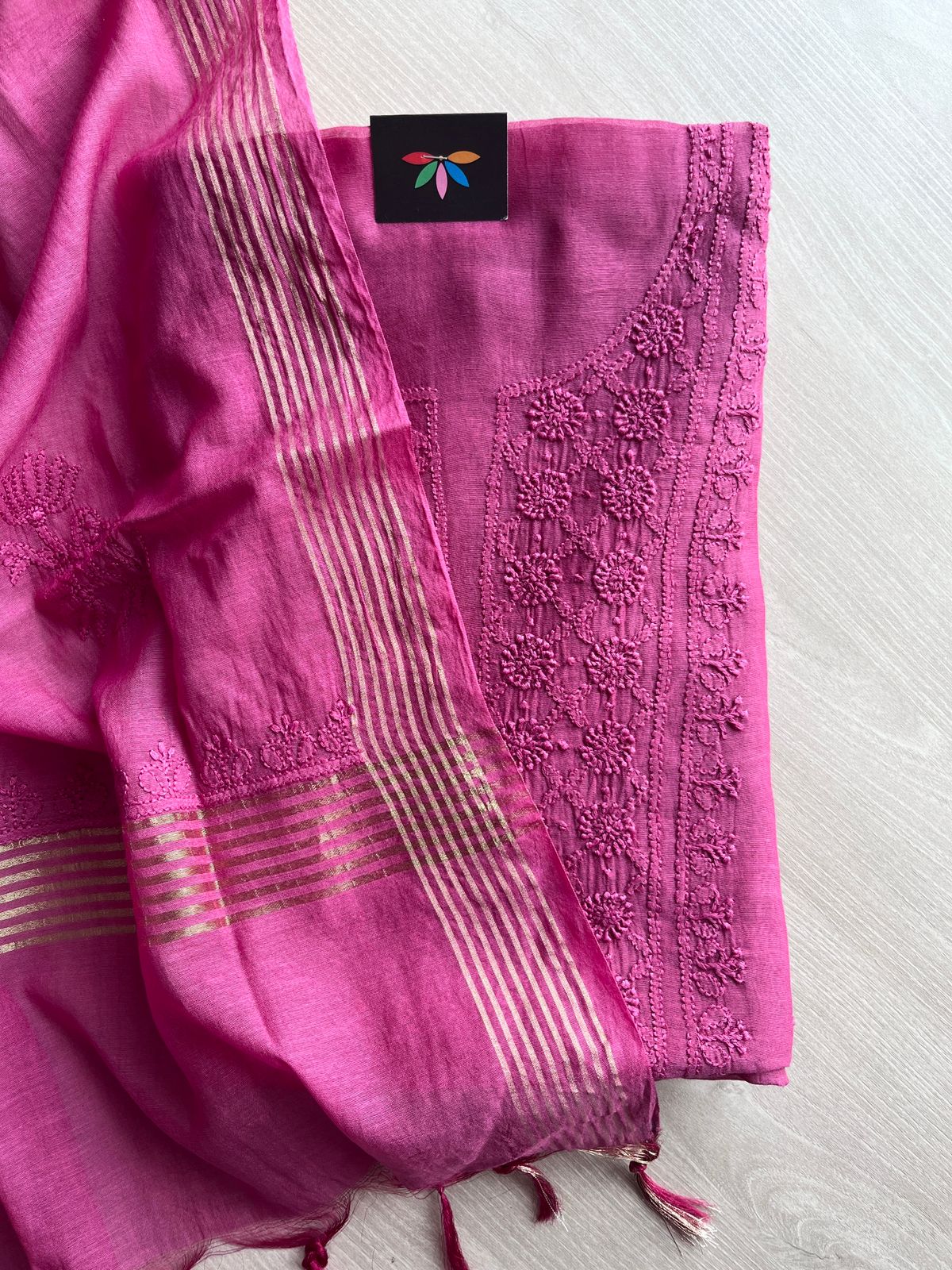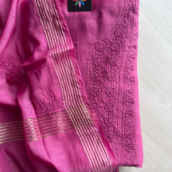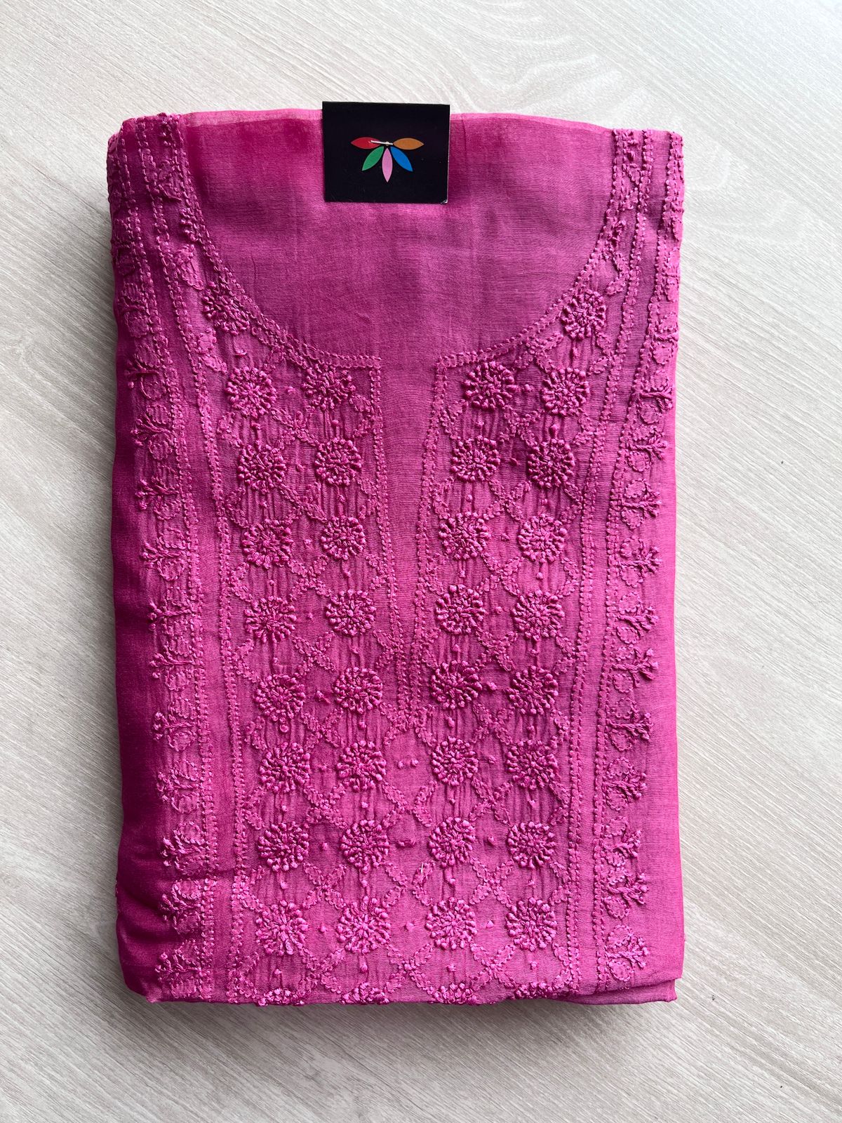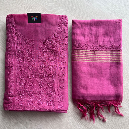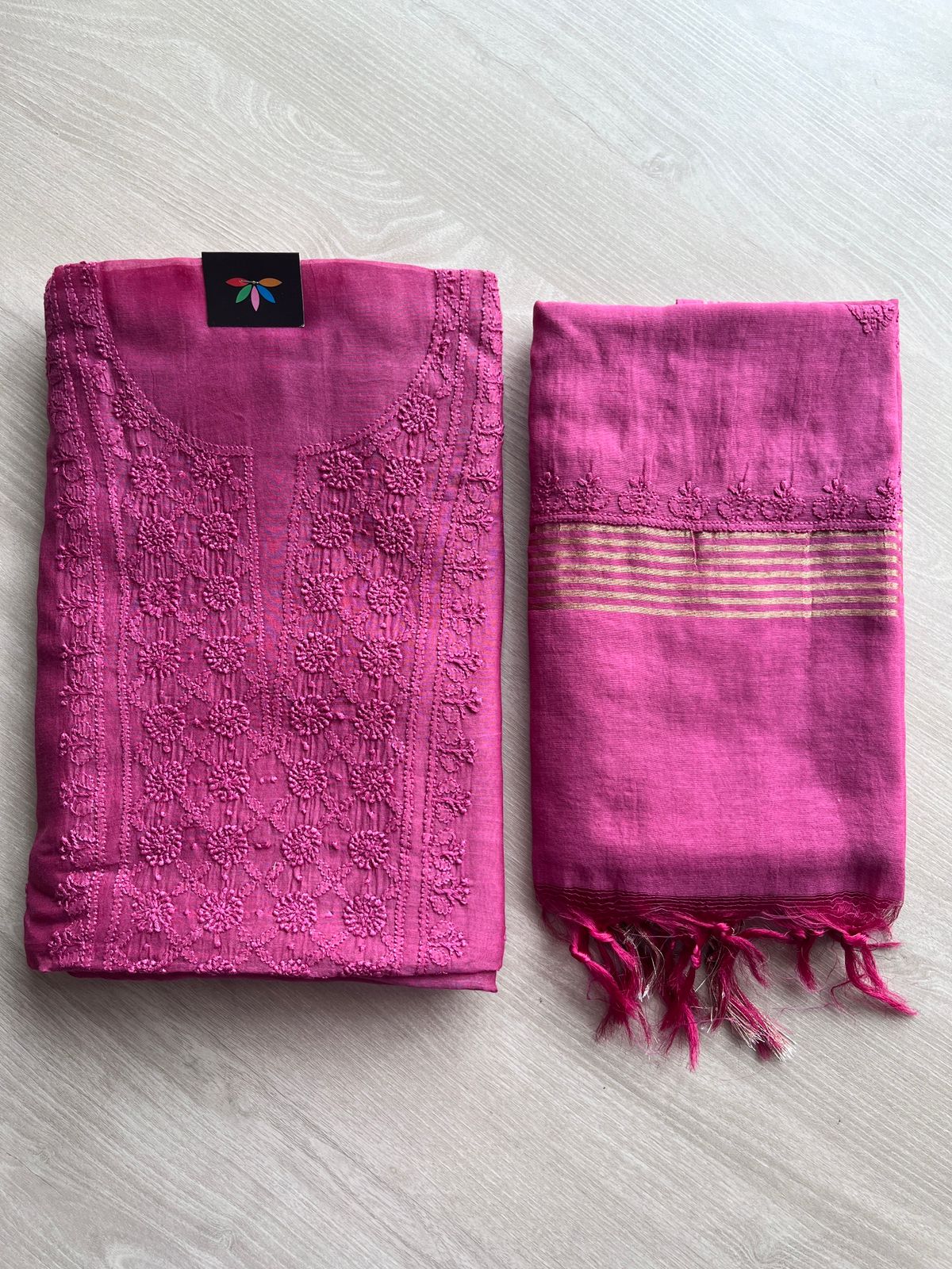 Hand Embroidered Chikankari Chanderi Silk Cotton Kurti Fabric with Duppata-27303