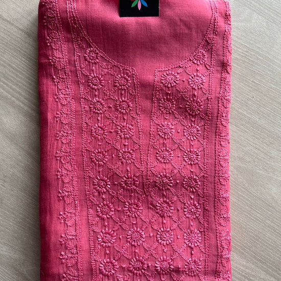 Hand Embroidered Chikankari Chanderi Silk Cotton Kurti Fabric with Duppata-27305