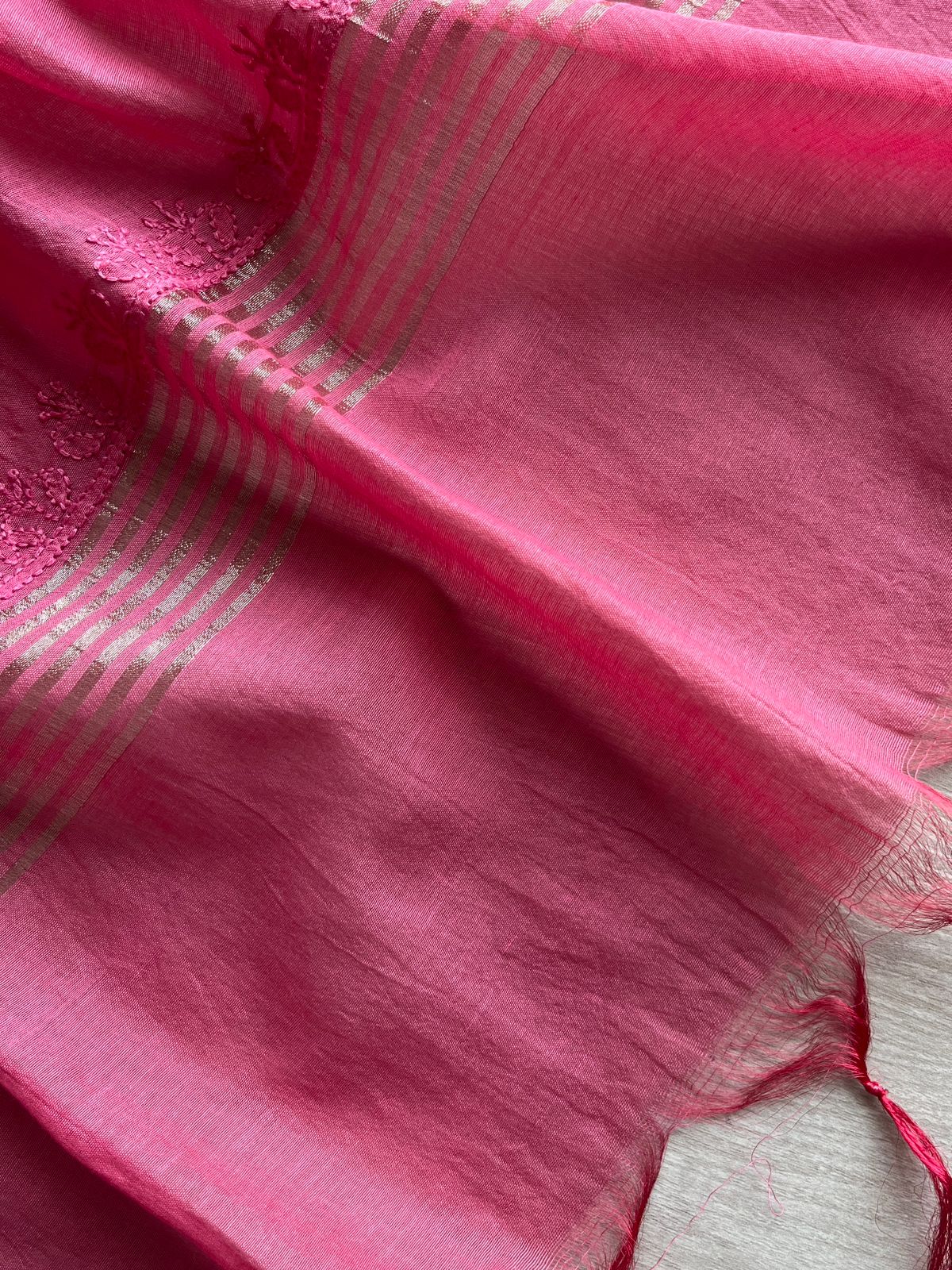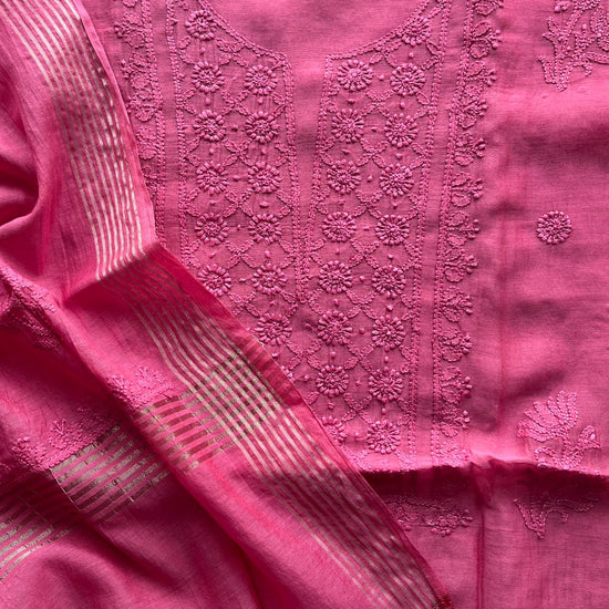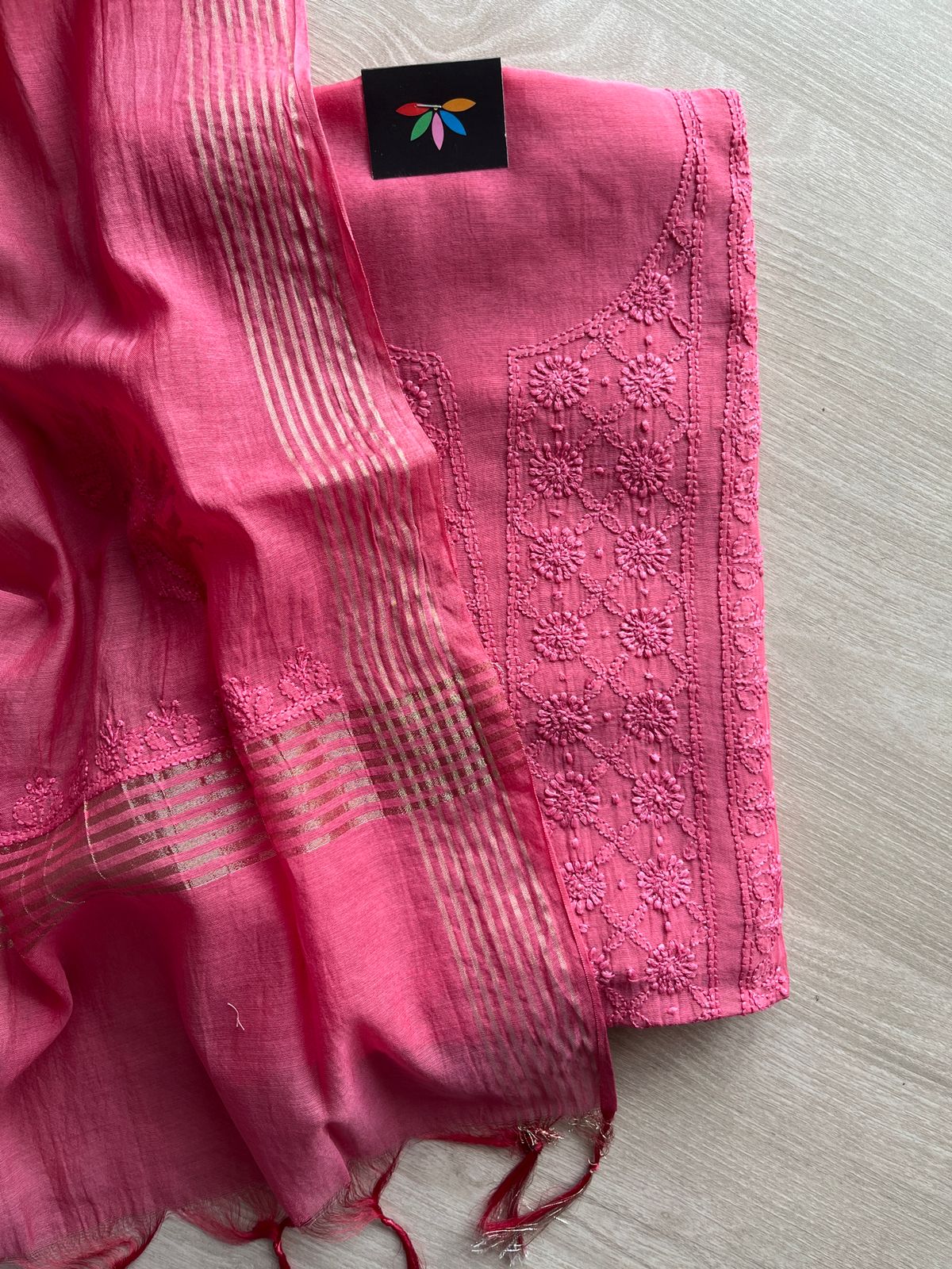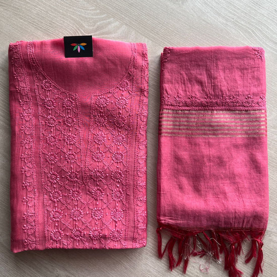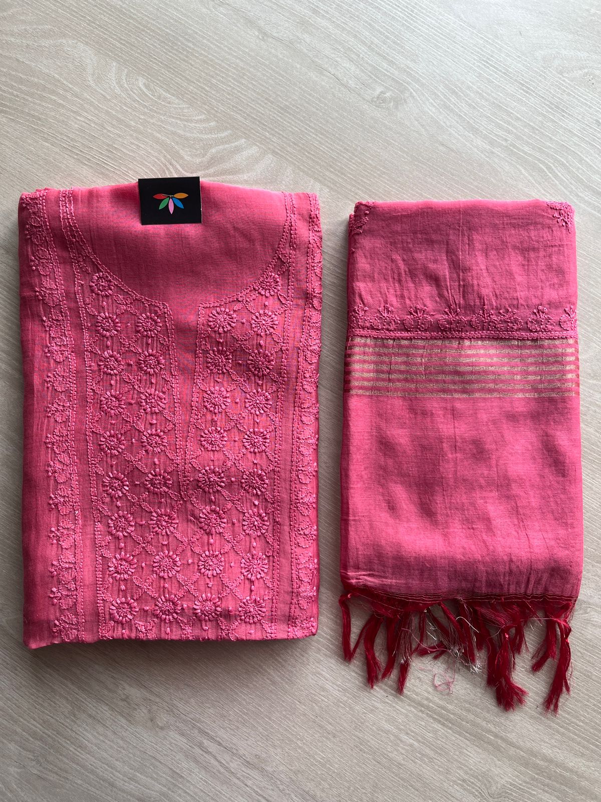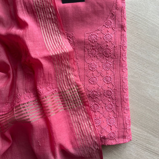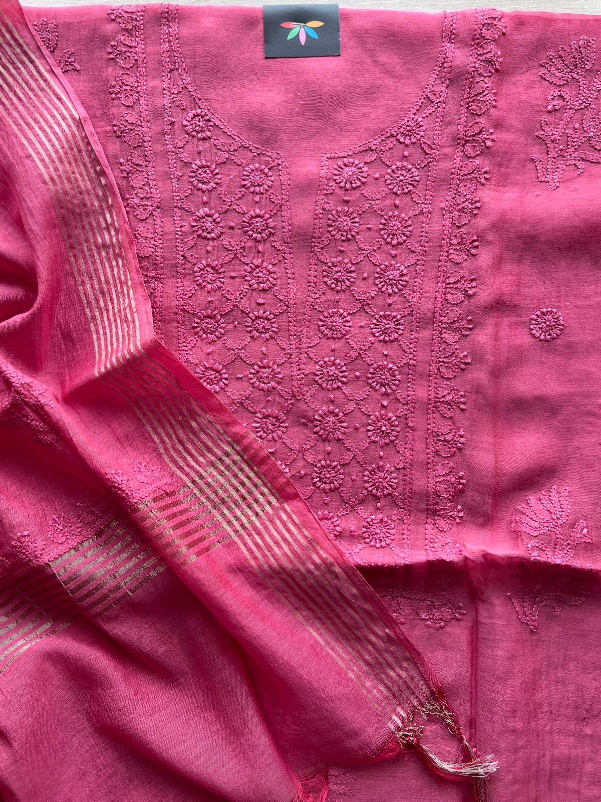 Hand Embroidered Chikankari Chanderi Silk Cotton Kurti Fabric with Duppata