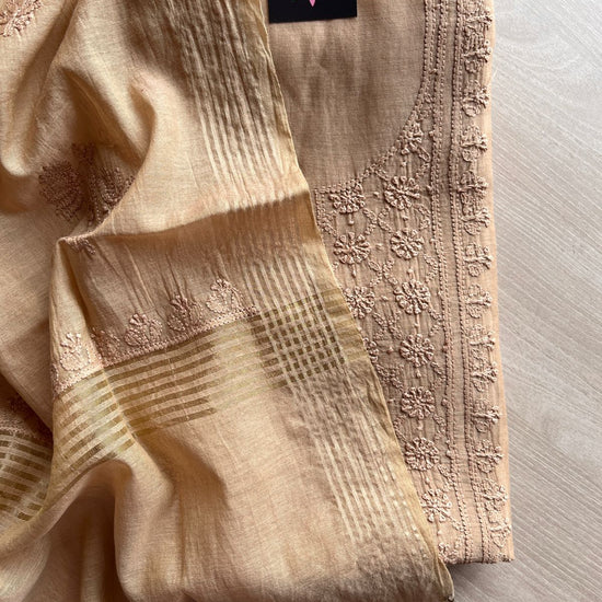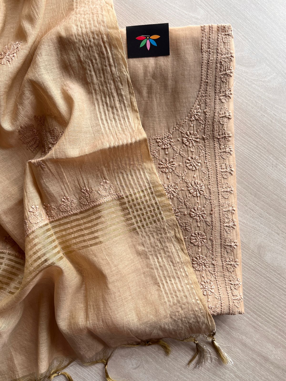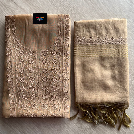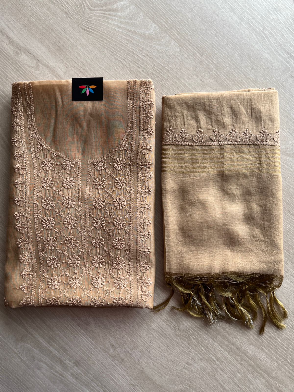 Hand Embroidered Chikankari Chanderi Silk Cotton Kurti Fabric with Duppata-27307
