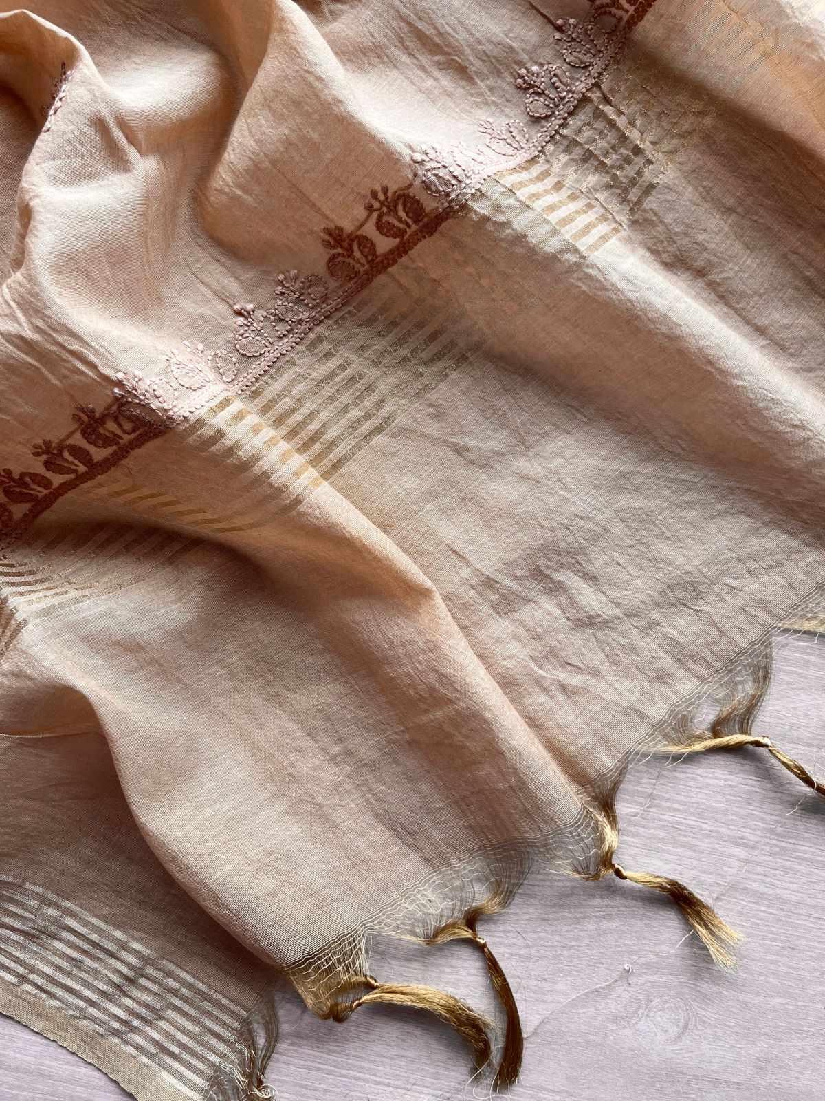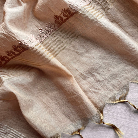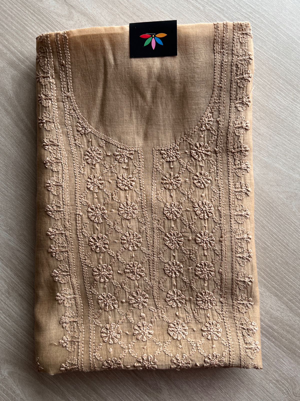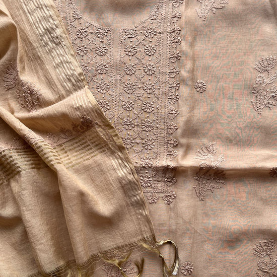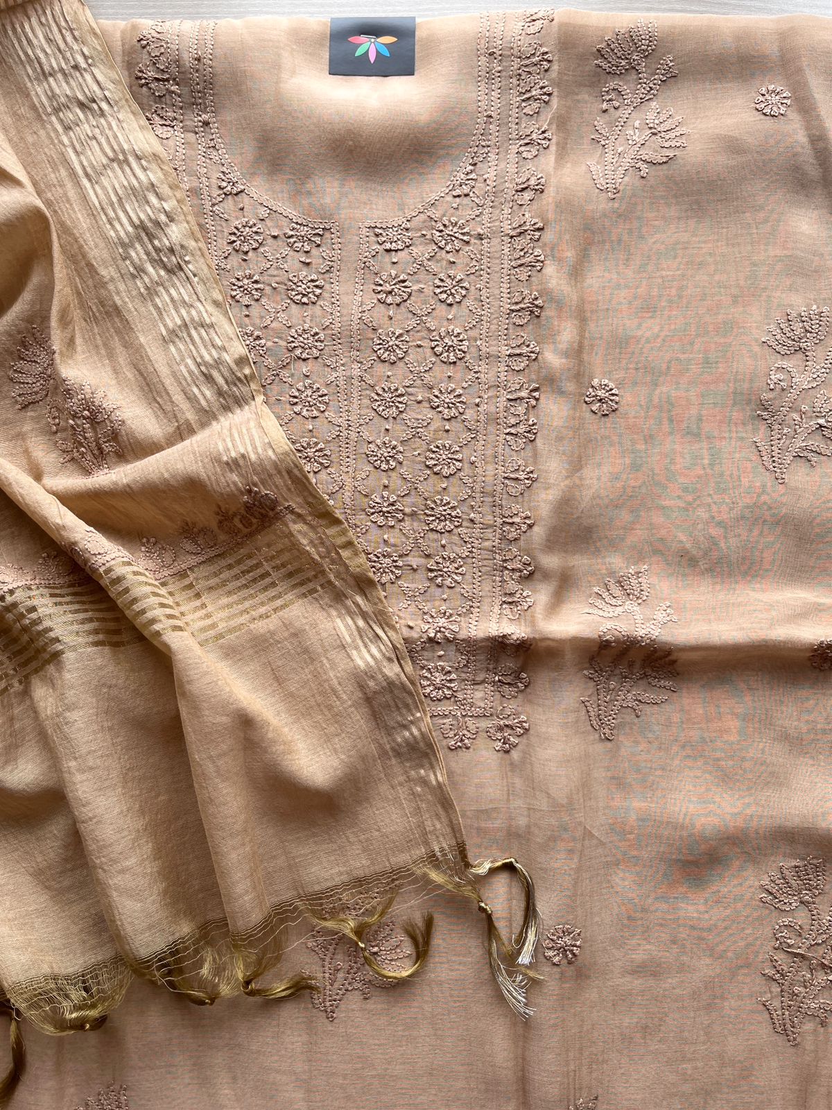 Hand Embroidered Chikankari Chanderi Silk Cotton Kurti Fabric with Duppata-27307