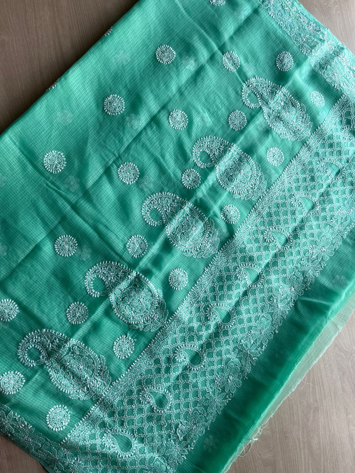 Hand embroidered Chikankari Kota Cotton Saree