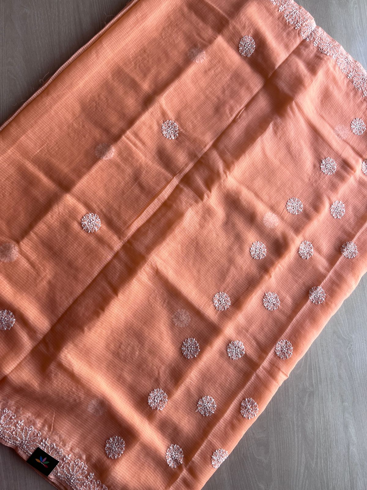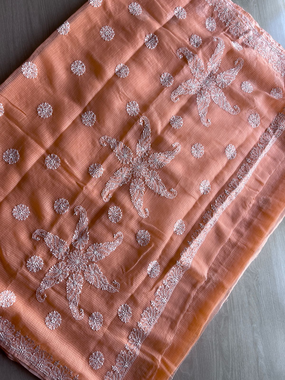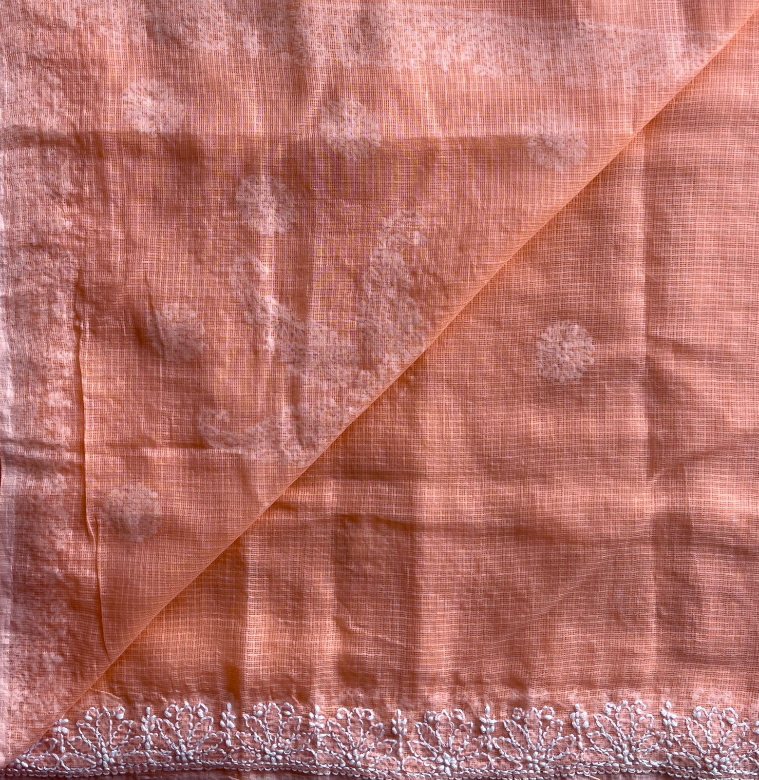 Hand embroidered Chikankari Kota Cotton Saree - 27377