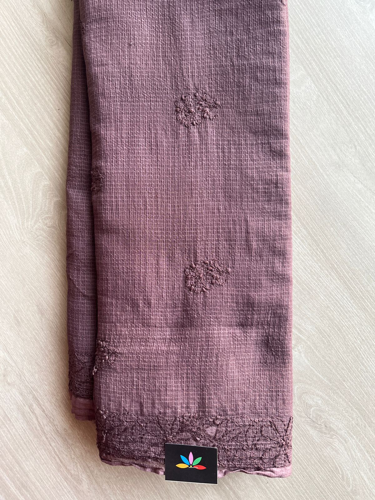 Hand embroidered Chikankari Kota Cotton Saree - 27378