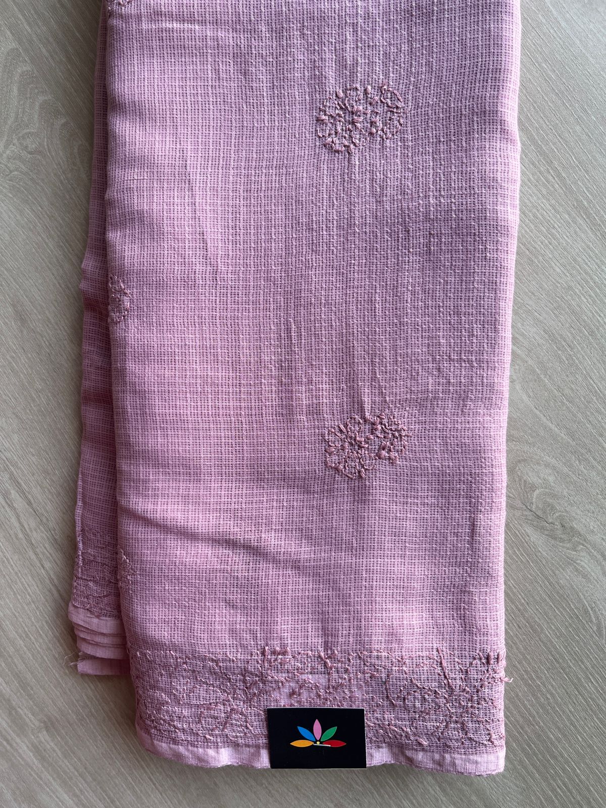 Hand embroidered Chikankari Kota Cotton Saree - 27383