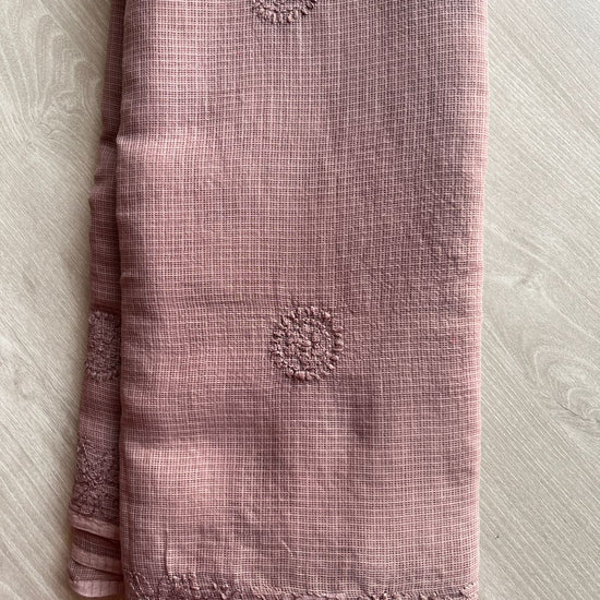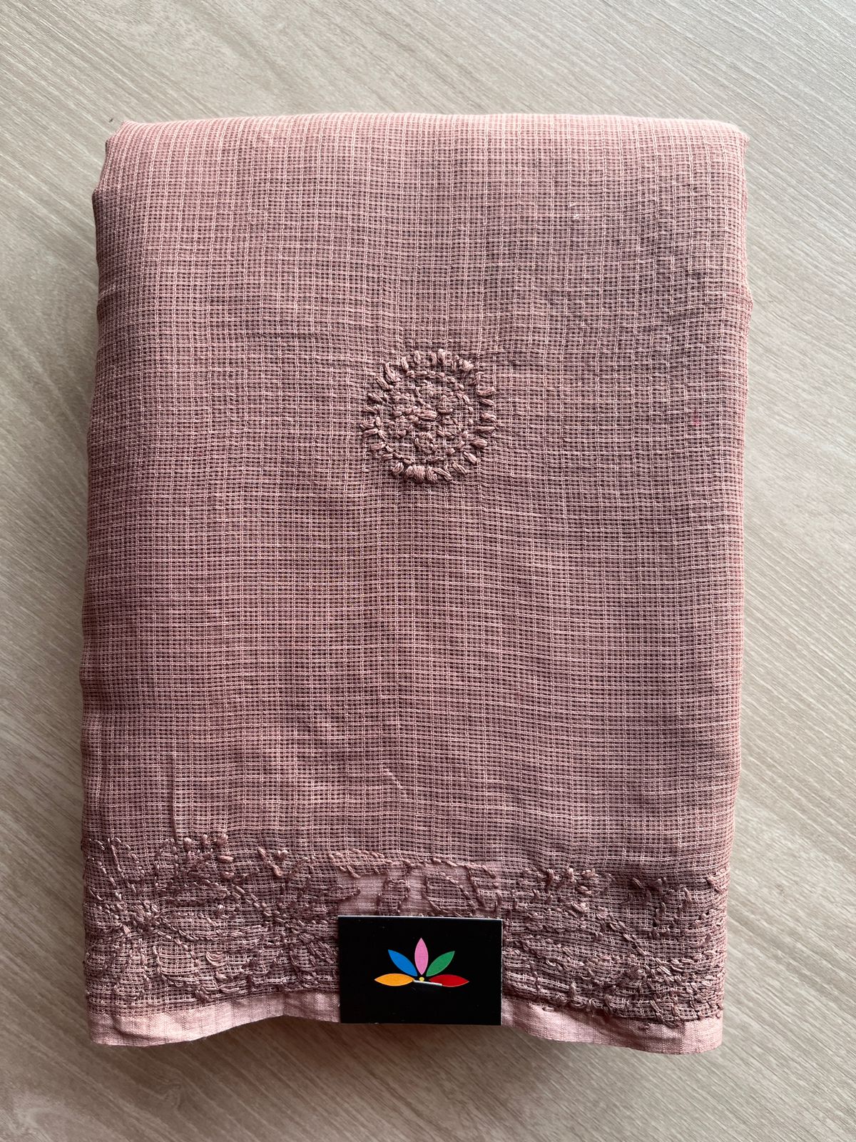 Hand embroidered Chikankari Kota Cotton Saree - 27384