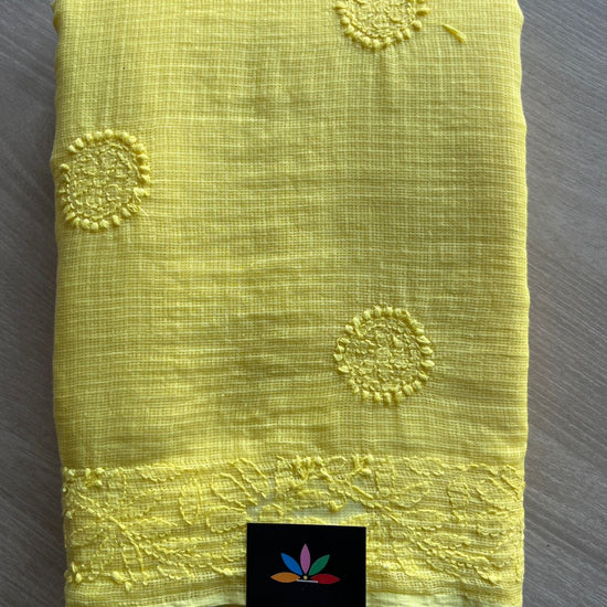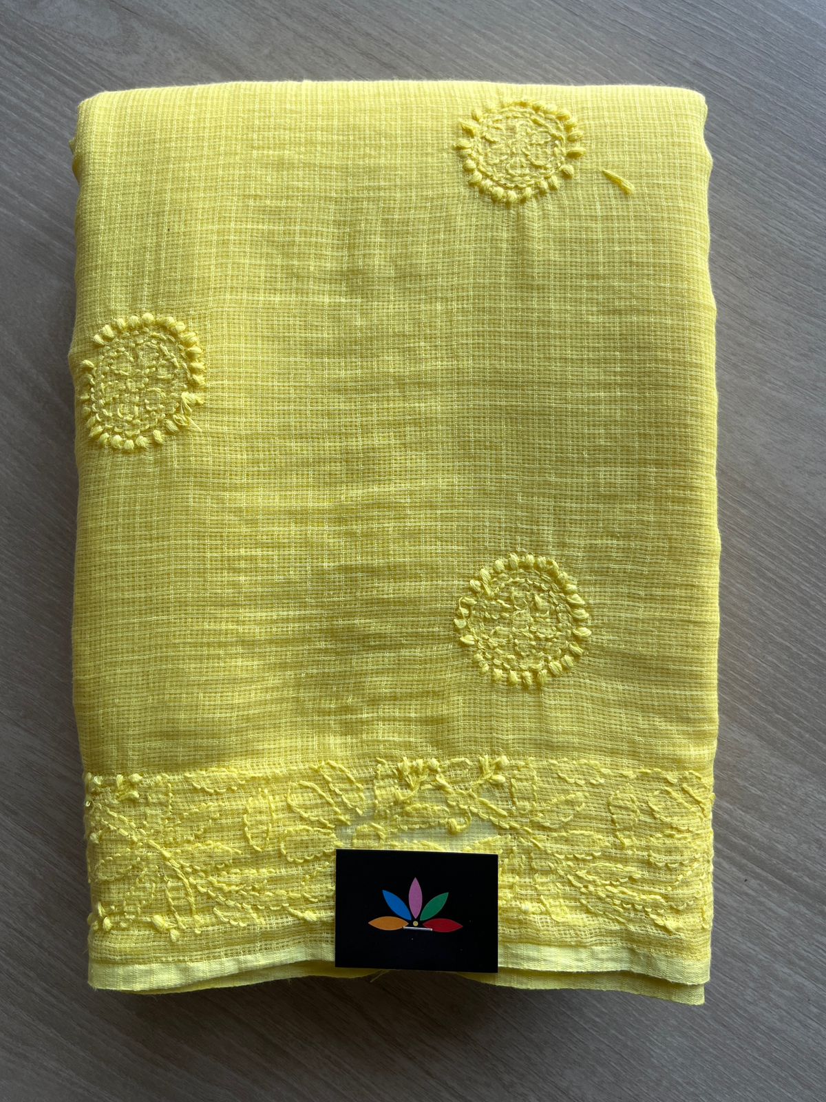 Hand embroidered Chikankari Kota Cotton Saree - 28565
