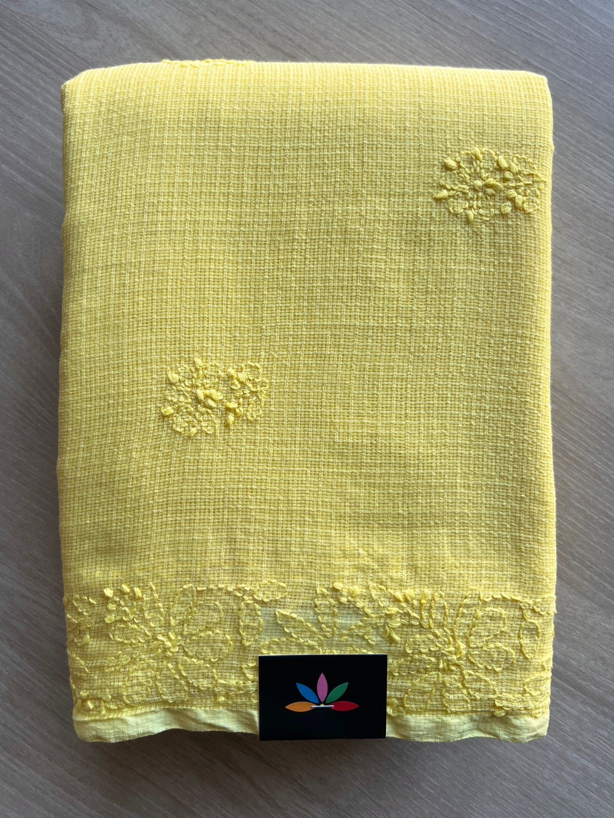 Hand embroidered Chikankari Kota Cotton Saree - 28571