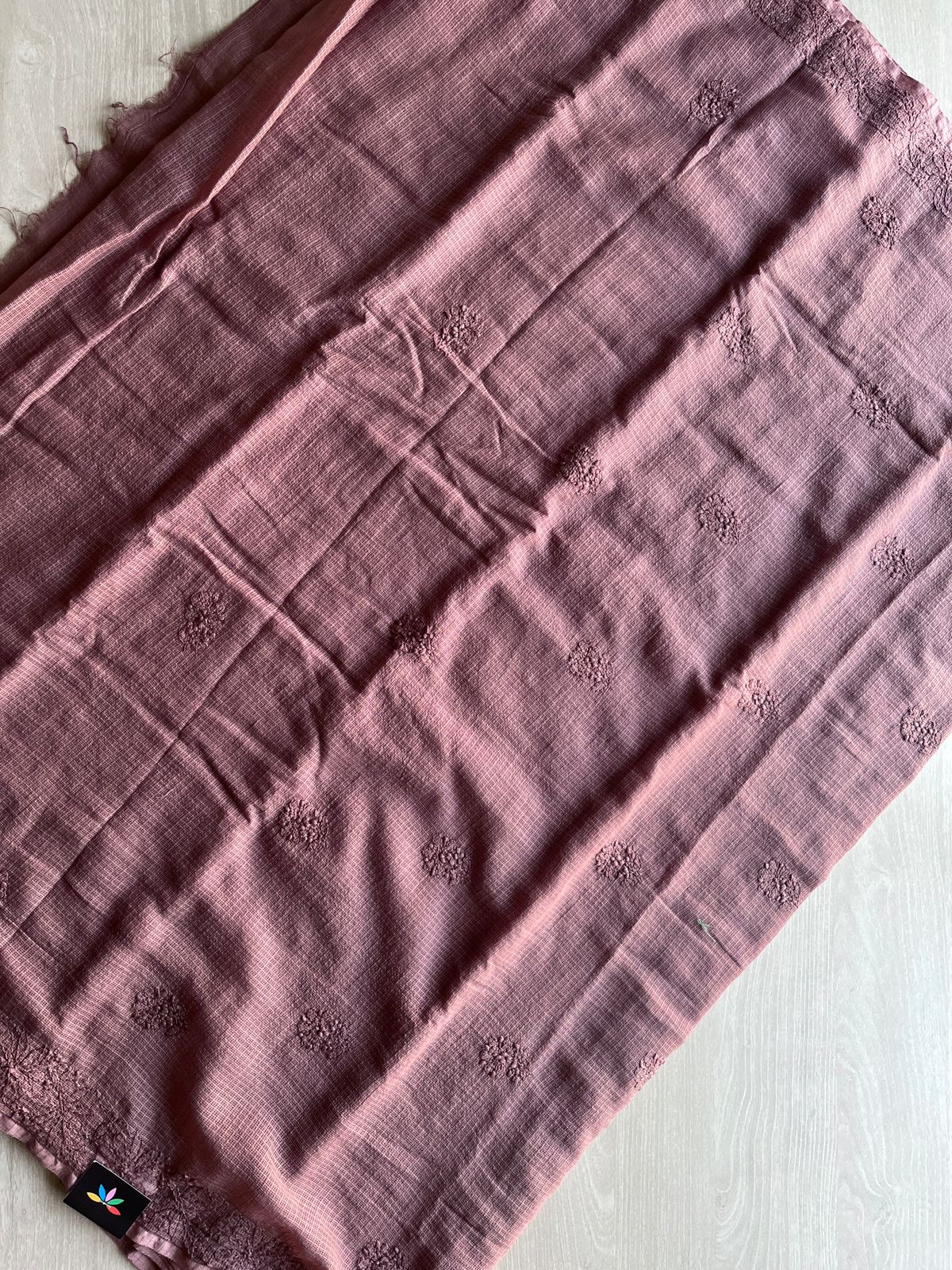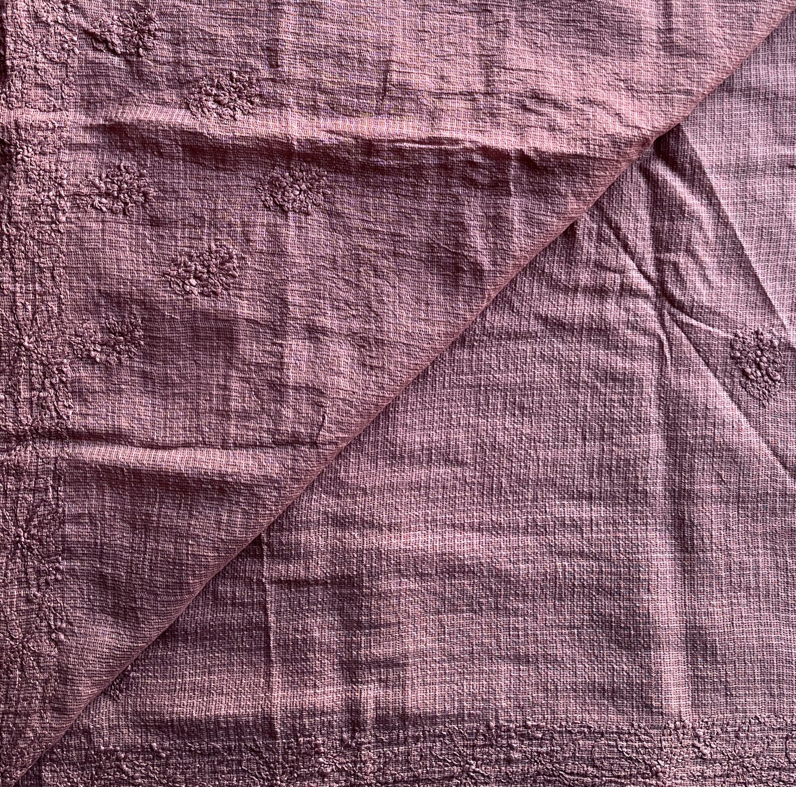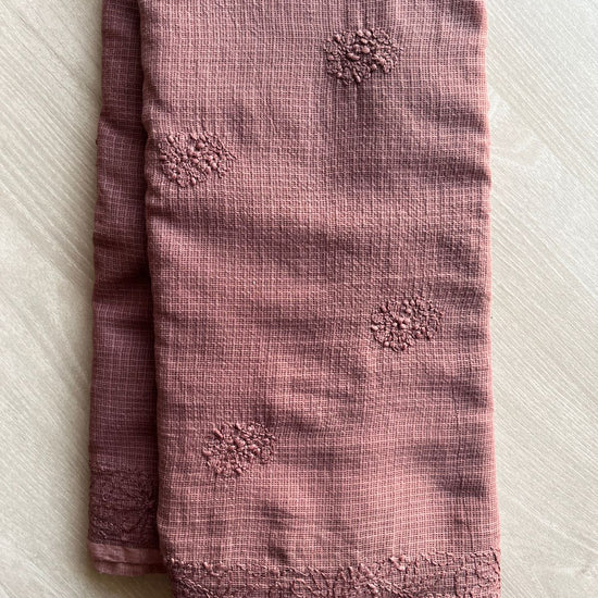 Hand embroidered Chikankari Kota Cotton Saree - 28572-28573