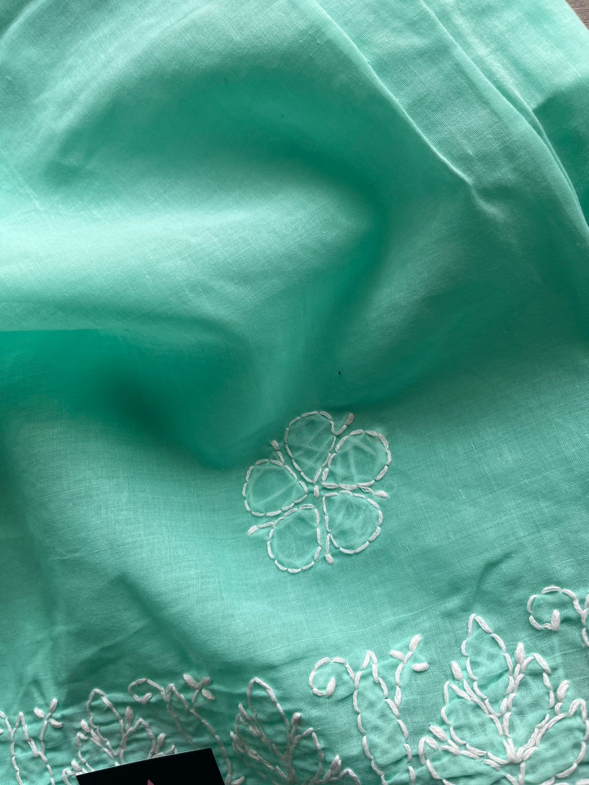 Hand Embroidered Voile Cotton Saree - 28340