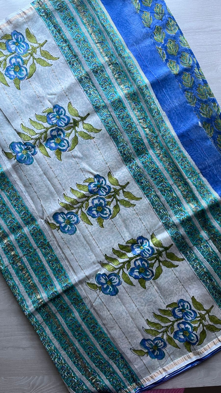 Handblock Printed Chanderi Cotton Silk Saree -24493-24494