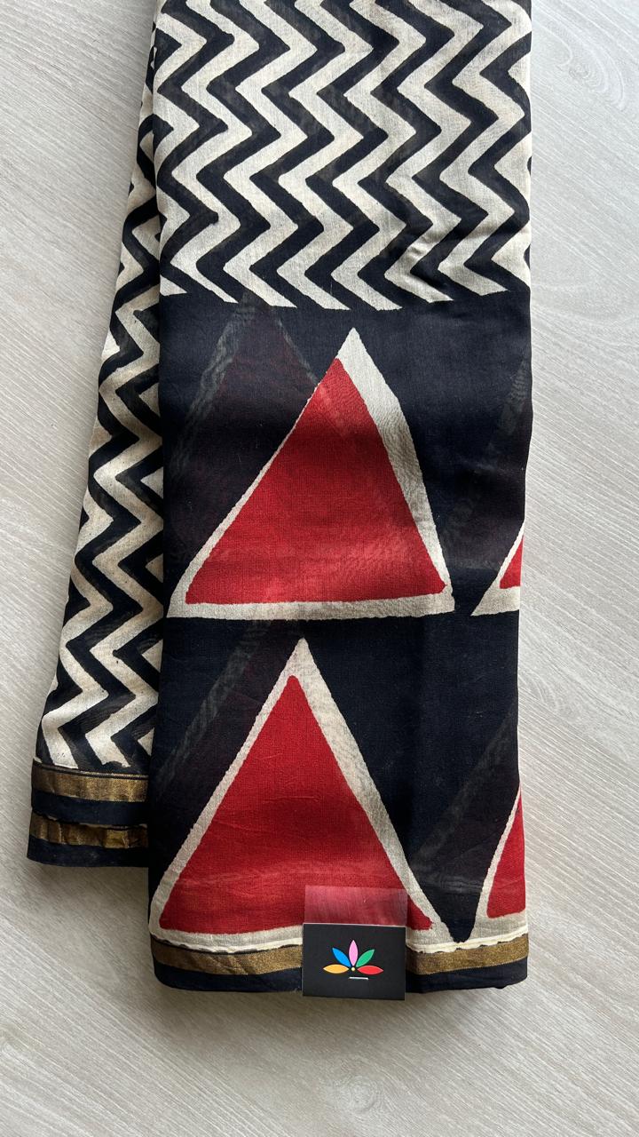 Handblock Printed Chanderi Cotton Silk Saree -24583