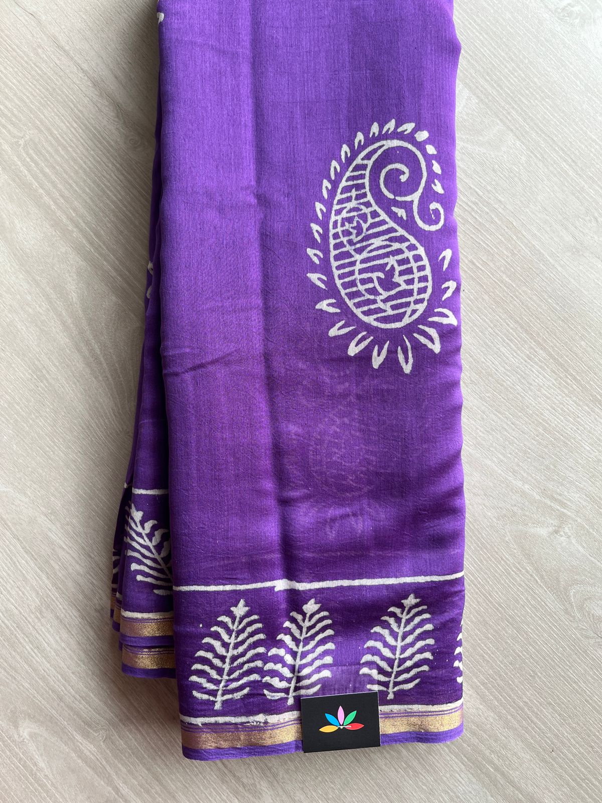 Handblock Printed Chanderi Cotton Silk Saree -27257