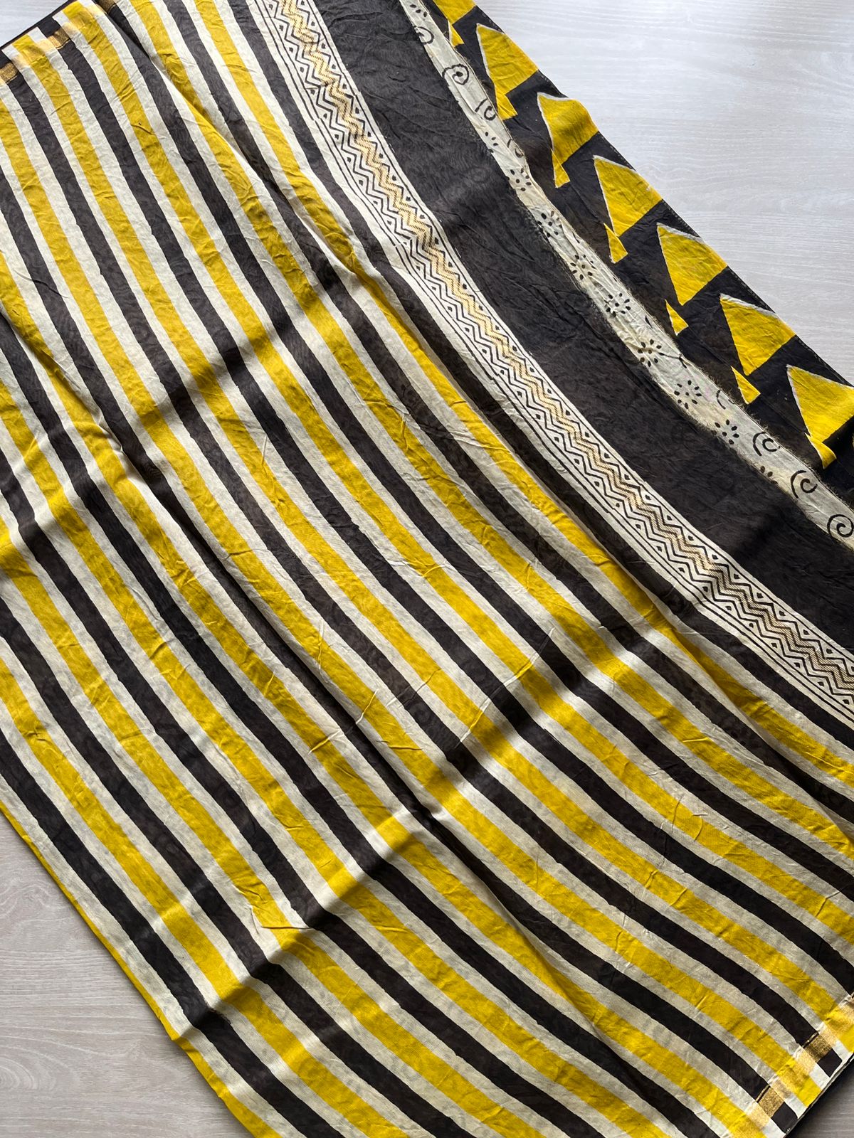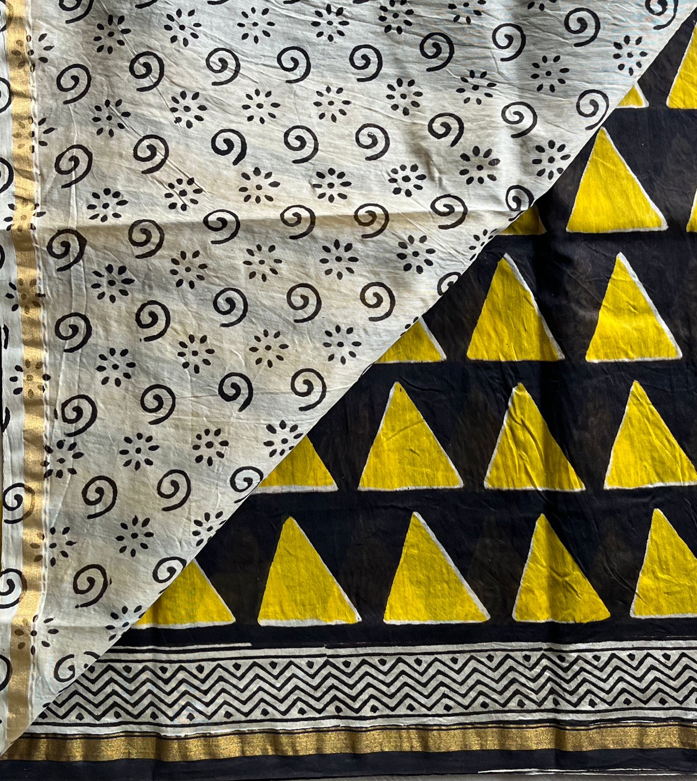 Handblock Printed Chanderi Cotton Silk Saree - 27330