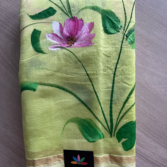 Handblock Printed Chanderi Cotton Silk Saree(without blouse) - 27675