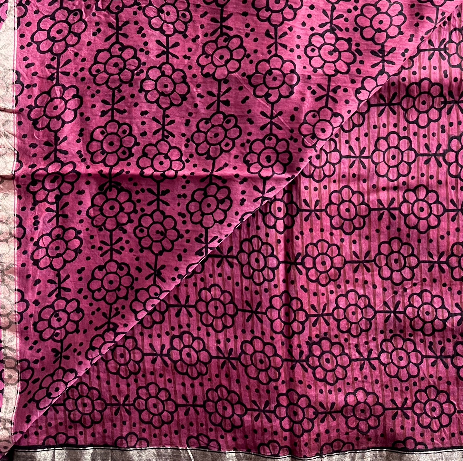 Handblock Printed Chanderi Cotton Silk Saree - 27677-27678