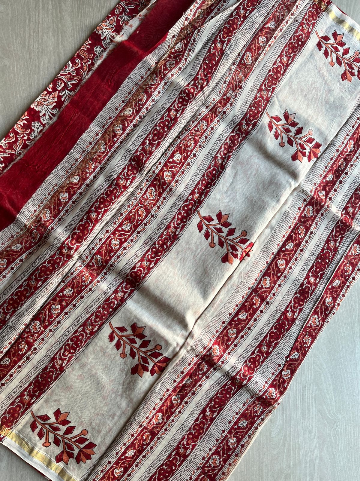 Handblock Printed Chanderi Cotton Silk Saree -29096