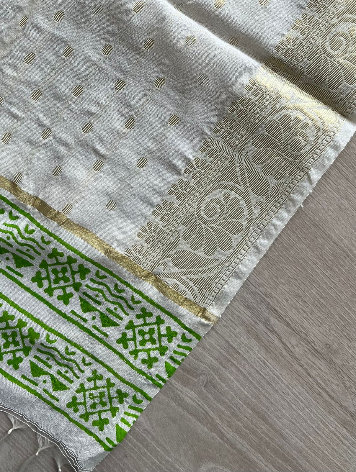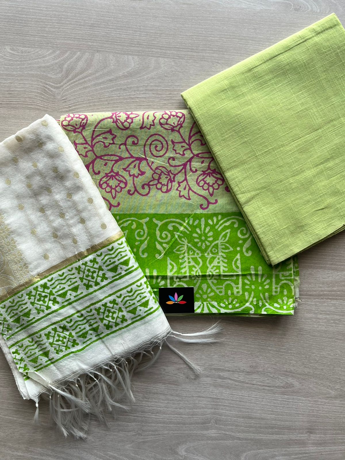 Handblock Printed Chanderi Silk Cotton Salwar Suit With Banarasi Woven Dupatta