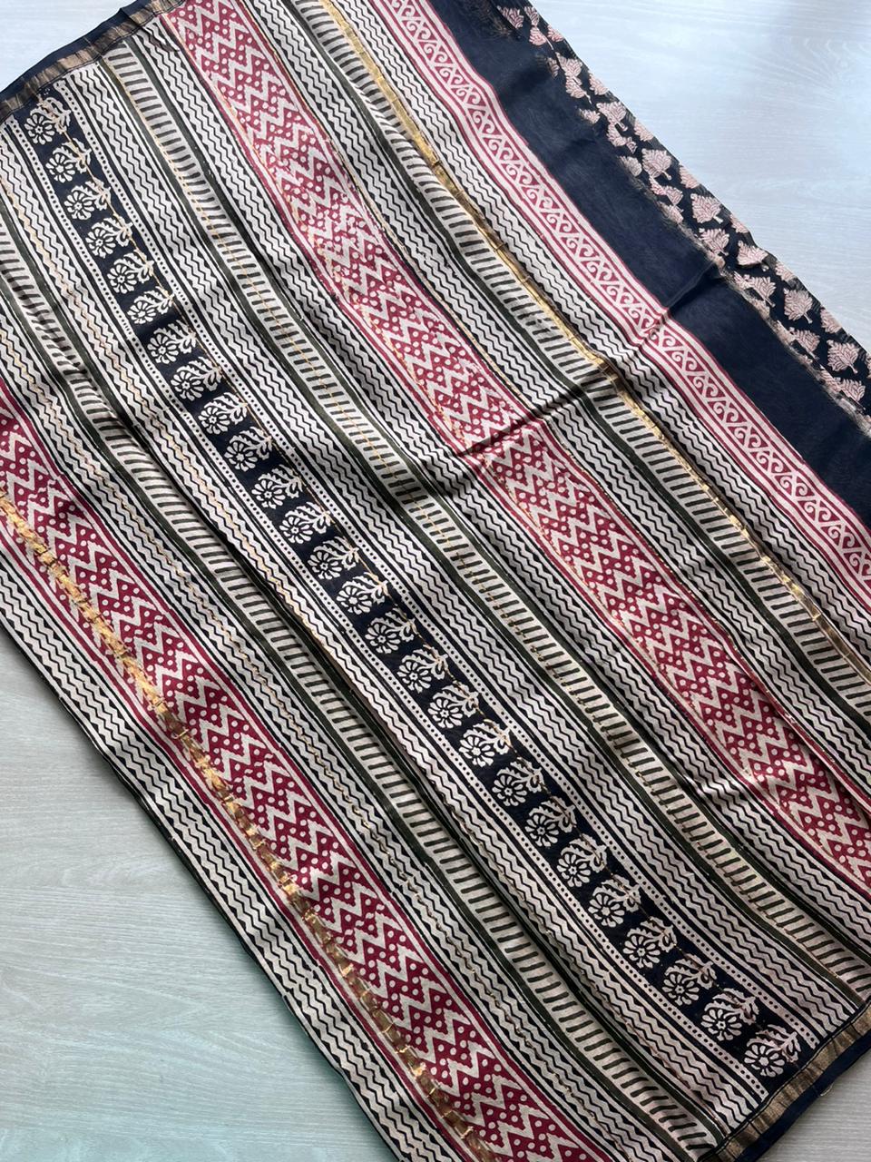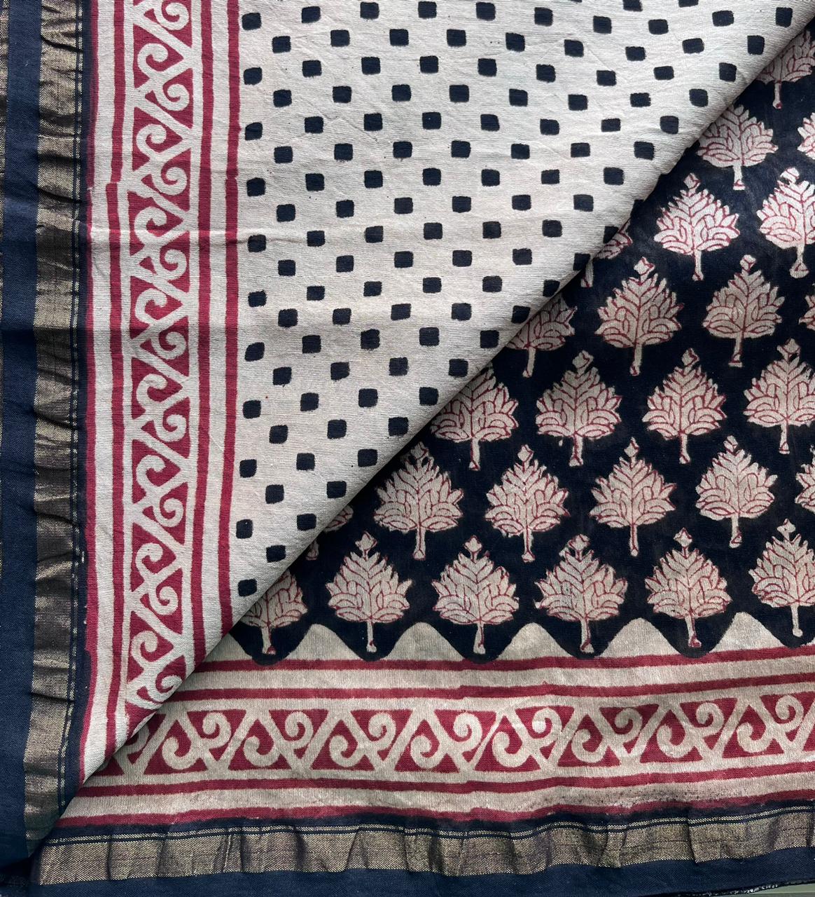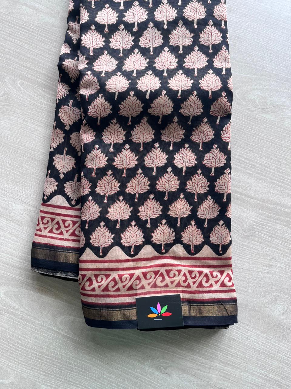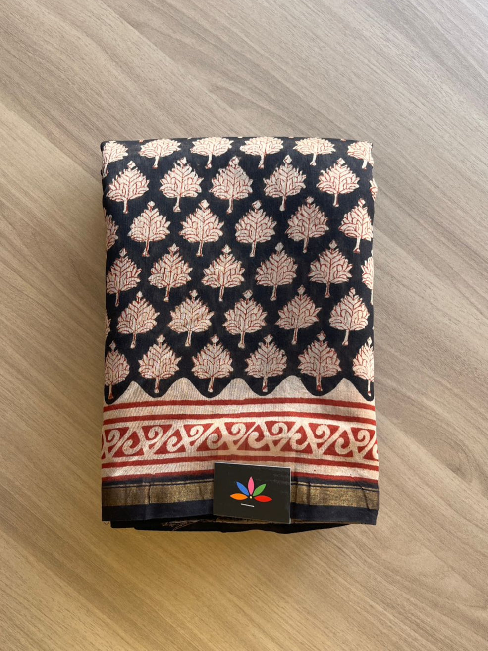 Handblock Printed Chanderi Silk Cotton Saree -9437 - 9438